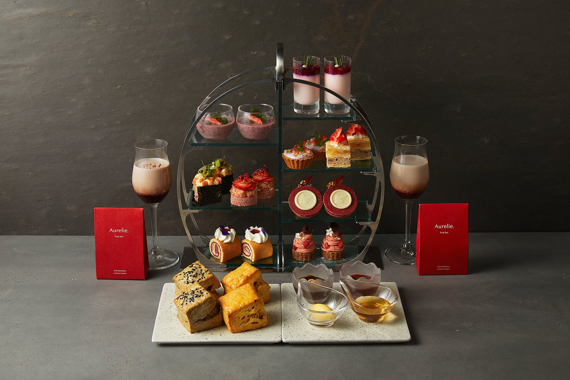 今回のコラボレーションでは、このようなMEGUMIの美に対する思い、そして『Aurelie.(オレリー)』に配合されたリンゴやブドウ果実などの植物性幹細胞エキスからインスパイアを受け、内側から美しさを引き出すような特別なメニューを考案。奈良県産の苺「古都華(ことか)」をはじめとする苺づくしのスイーツ5品とセイヴォリー5品をご用意しました。さらにコラボレーションを記念して『Aurelie.(オレリー)』スペシャルキットをプレゼント。食とスキンケアにより、内側からも外側からも輝く特別なひと時を過ごしてほしいという願いを込めています。