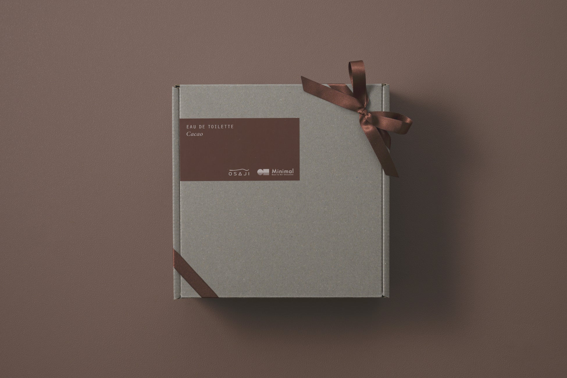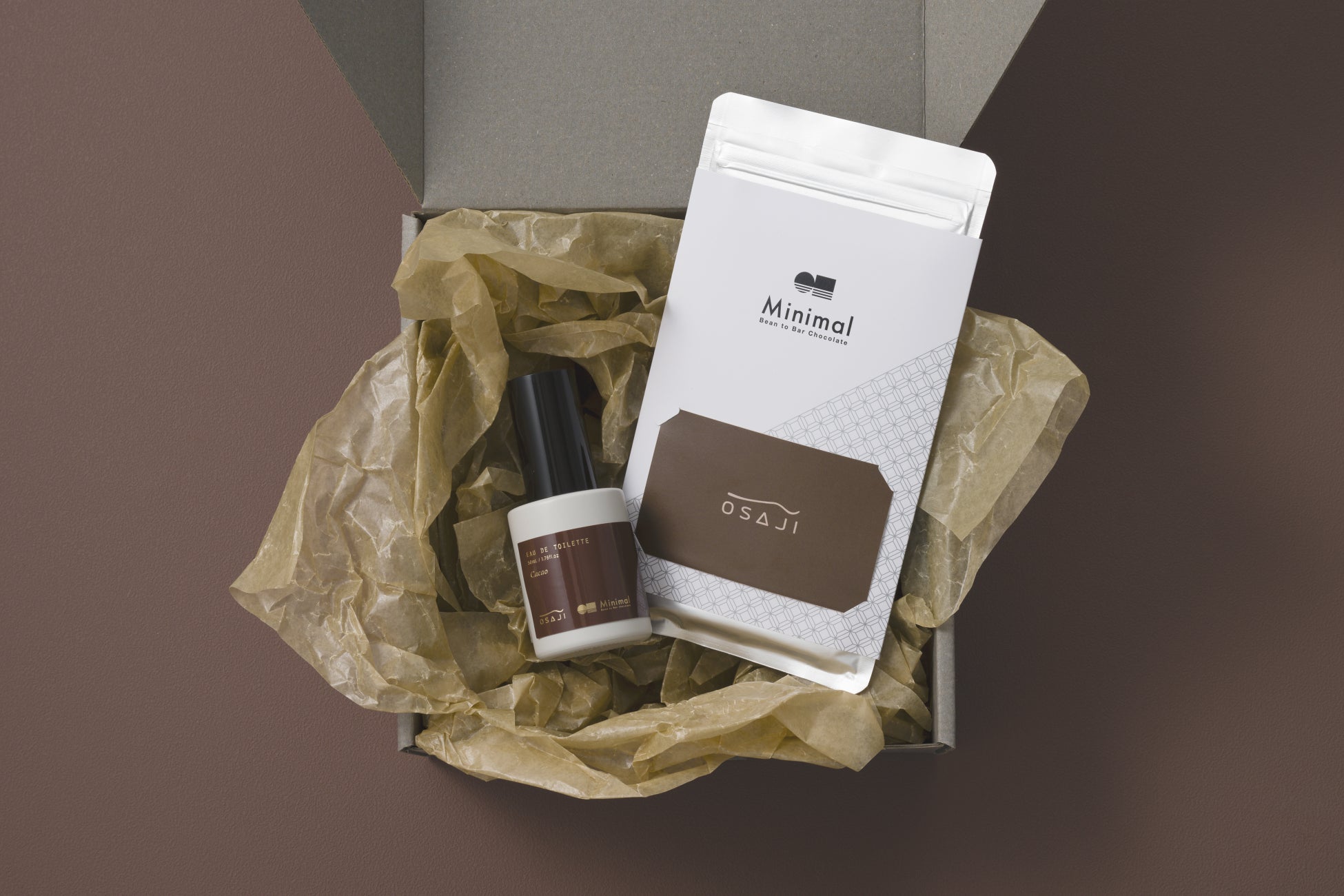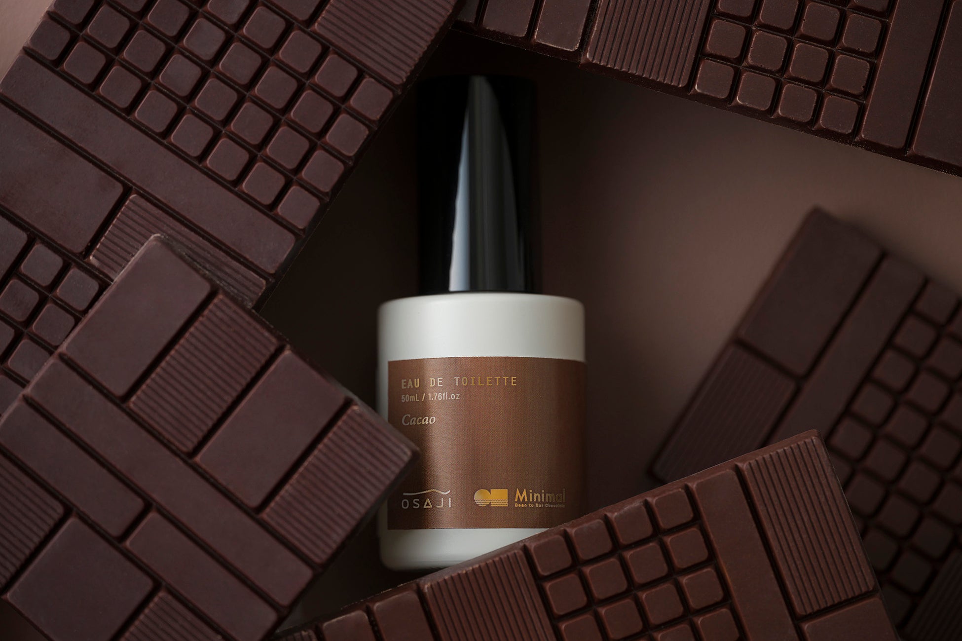 今回のコラボレーションでは、ミニマルのチョコレートの原料となっているカカオニブをOSAJIにご提供いただき、その香りからインスピレーションを得て調香。