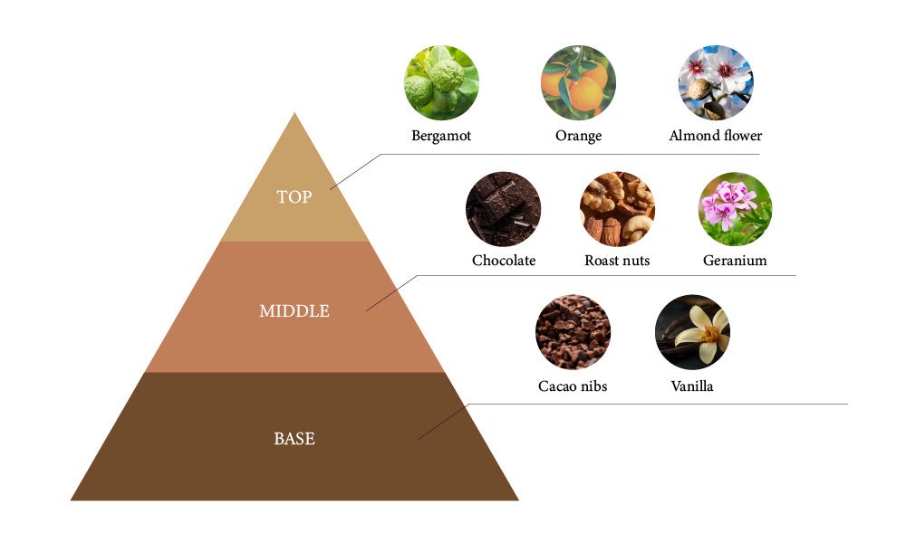 ミドル:チョコレート、ローストナッツ、ゼラニウム