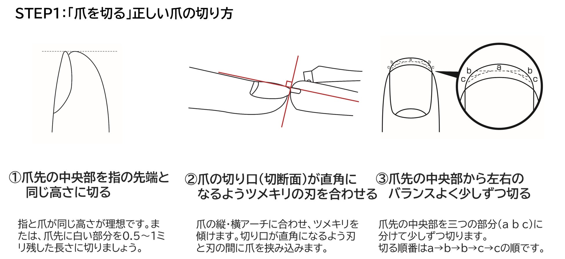 爪を「端から端へ切っていく」と答える人は半数近くで、爪の整え方を「あまり知らない」「全く知らない」と答えた方が全体の6割以上でした。正しい切り方とポイントはありますか。