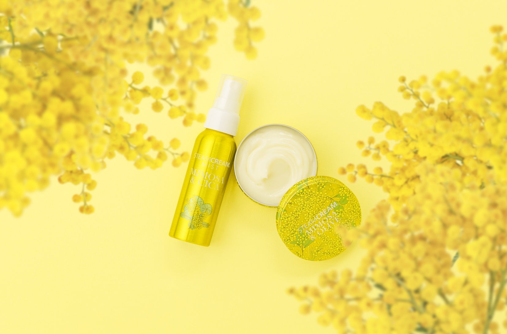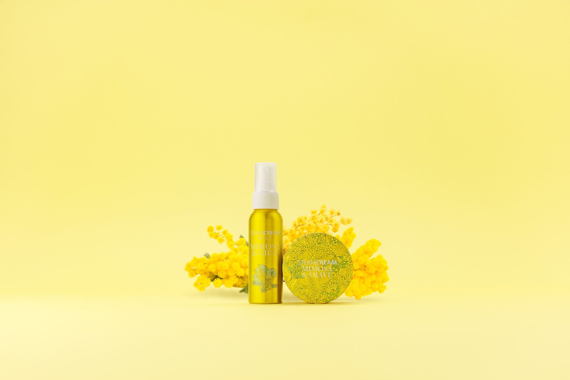 「スチームクリーム ミモザ&オリーブ」は、ブランド定番の保湿クリームをベースに、春先の肌悩み、繊細になりやすい心に寄り添うこだわりの原料を配合した季節限定の製品です。