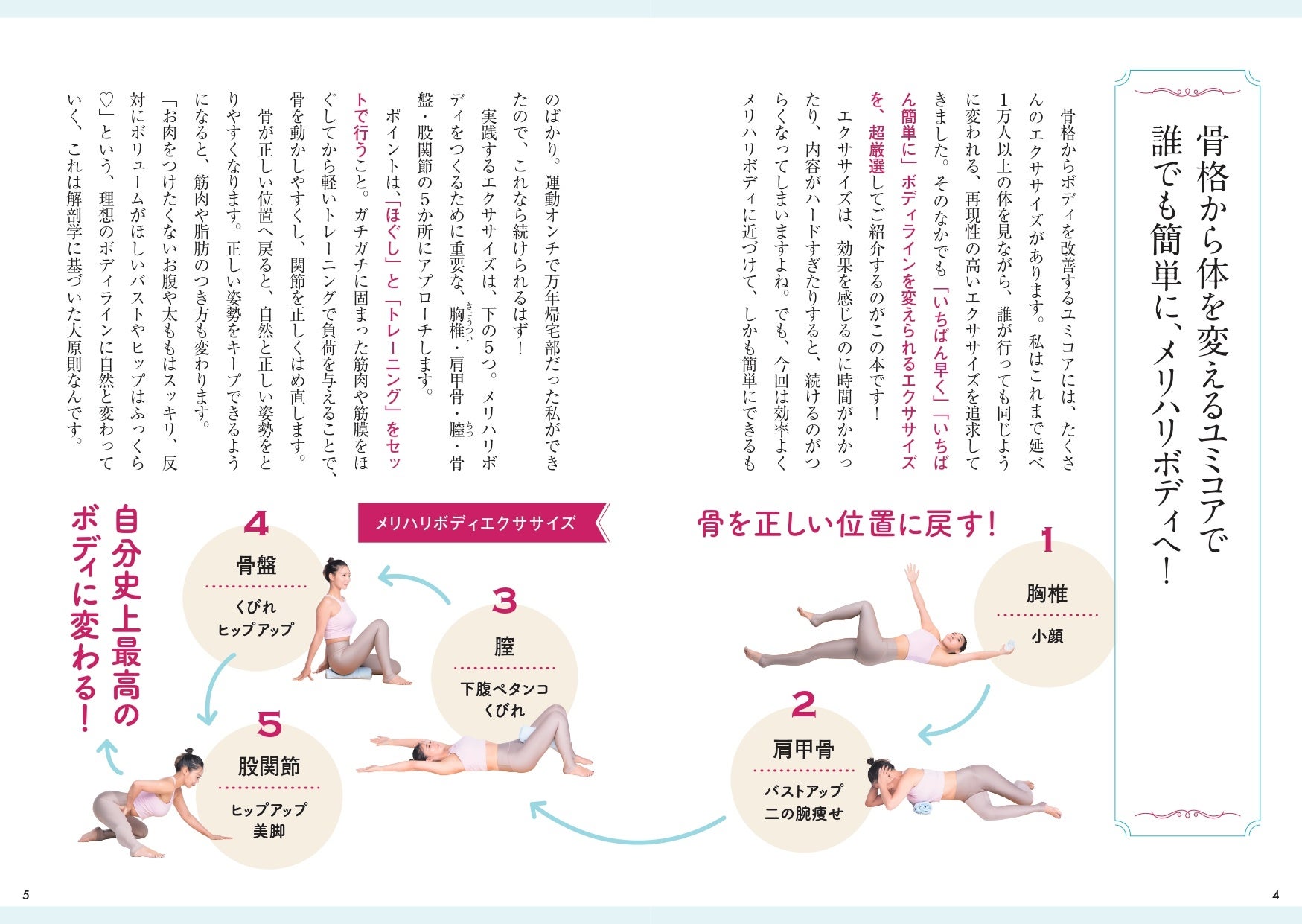 骨格レベルから体型が変わり、圧倒的にスタイルが良くなる!と話題の「ユミコア」が待望の書籍化!モデルや女優たちも絶賛するユミコアとは、骨格を整えることで、女性らしくメリハリのある理想のボディラインを手に入れることができる画期的なメソッドです。