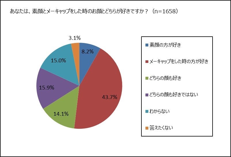 ② 素顔よりもメーキャップをした時の顔の方が好きな女性は4割超。