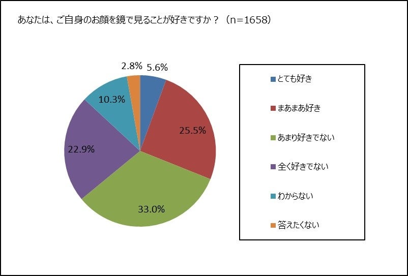 ③ 鏡で自分の顔を見ること、好き派約3割、嫌い派約6割。