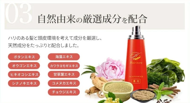 ヘアモアシリーズは、育毛剤、スカルプシャンプー、ジェルシャンプーがございますので、ぜひチェックしてみてください!