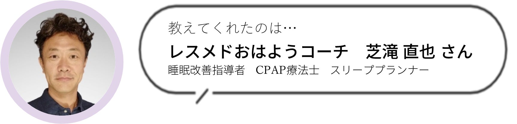 ※「レスメドおはようコーチ」は、睡眠の健康についてのトレーニングを受けた営業・カスタマーサービス担当者です。睡眠の健康、睡眠障害、睡眠の改善に役立つ製品等、睡眠に関する一般的な情報を提供できますが、資格を持つ医療専門家ではないため、医学的なアドバイスを提供することはできません。何らかの症状や懸念事項がある場合には、ご自身のご判断で、引き続き医師にご相談されてもよいかもしれません。