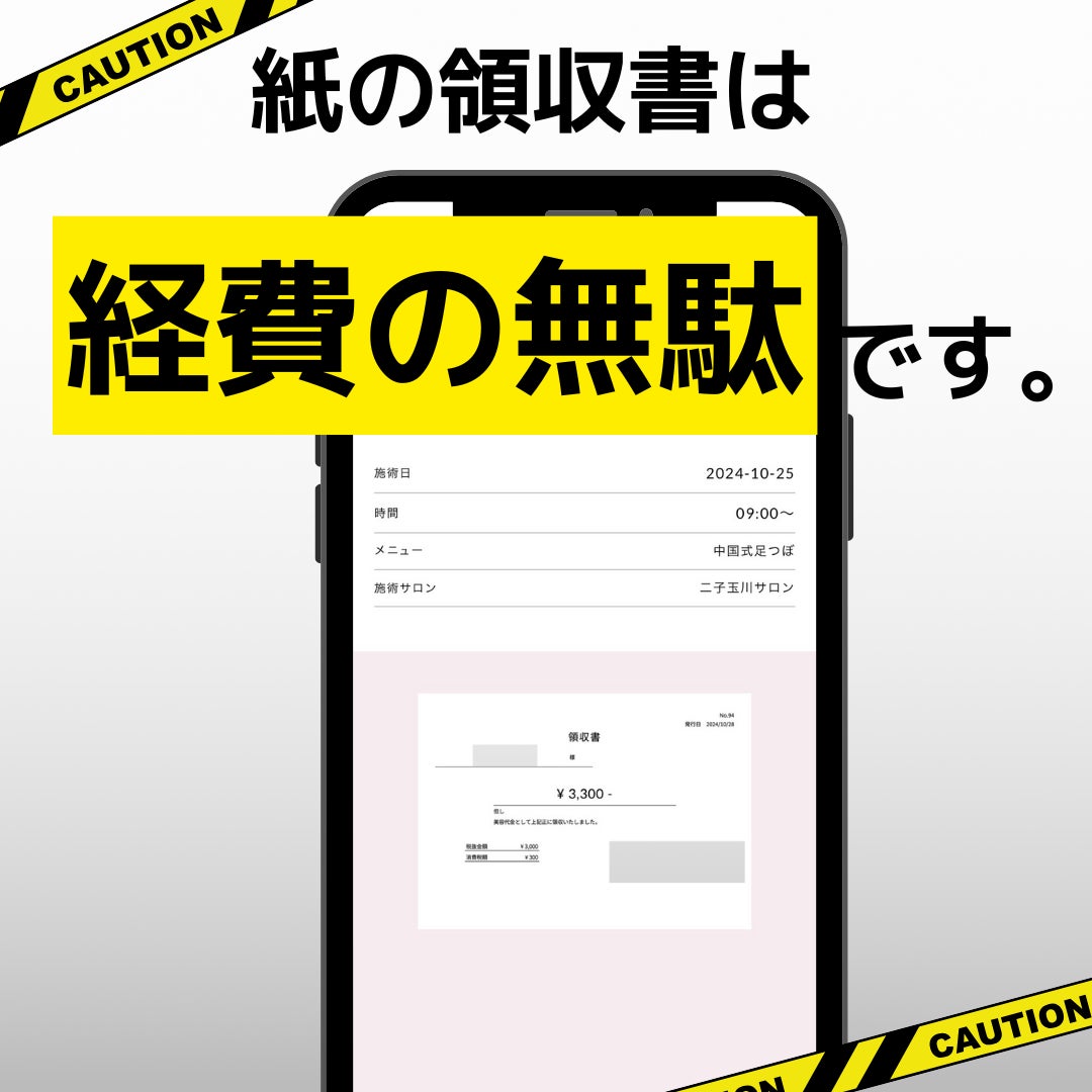 ・施術代金+店販価格の総額が「自動で電子領収書」として無料発行されます。いままでサロンで発行していたレシートや領収書の費用が省けます。