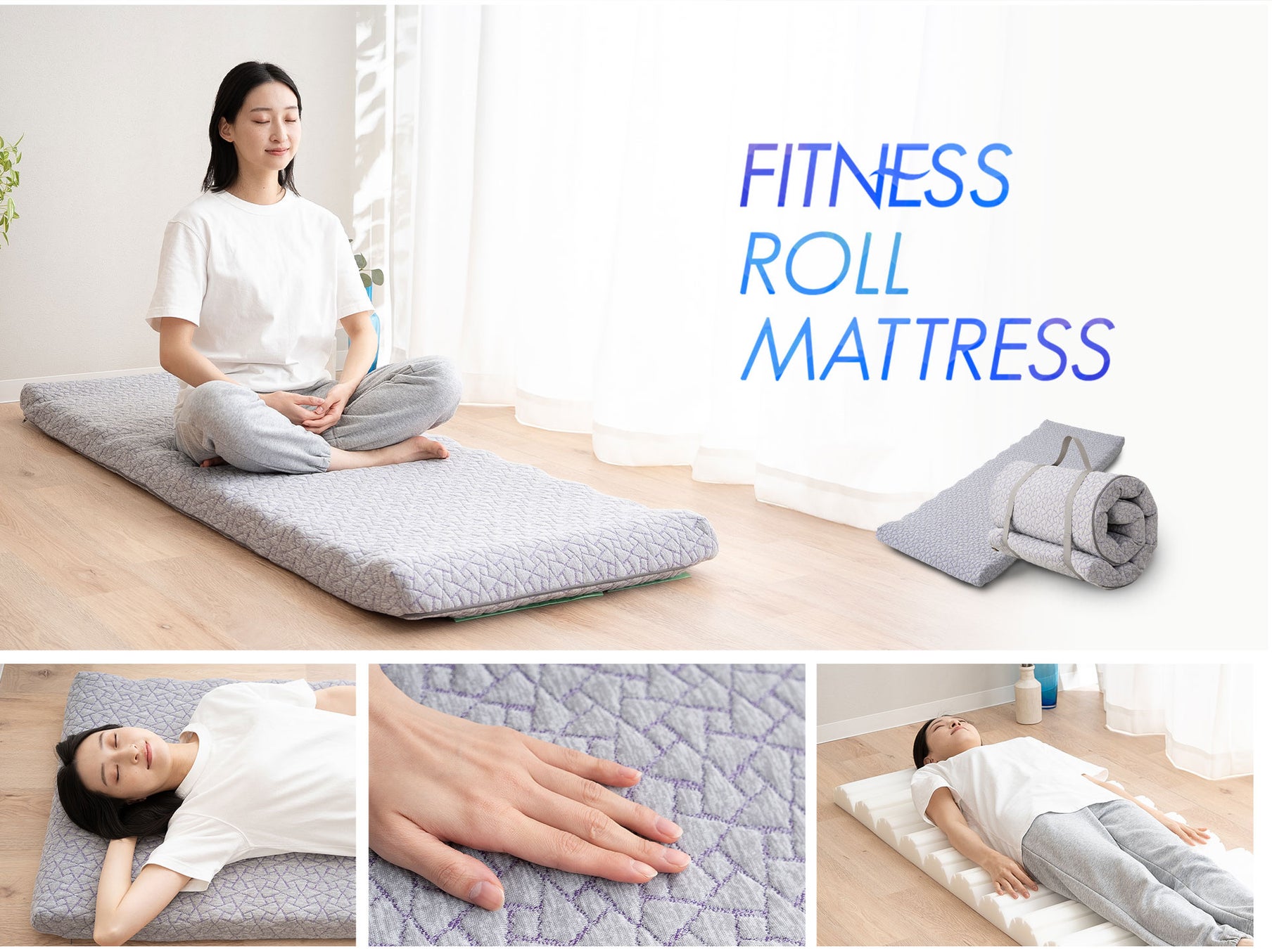 「背中が伸びている感覚が気持ちいい」とご評価いただいているフィットネスマットレスをご愛用中のお客様からの「小さめがほしい」「でも寝心地は重要」という声にお応えし、フィットネスマットレスの寝心地や使い勝手の良さはそのままに、ロール形状で持ち運びしやすいコンパクトショートサイズを開発いたしました。