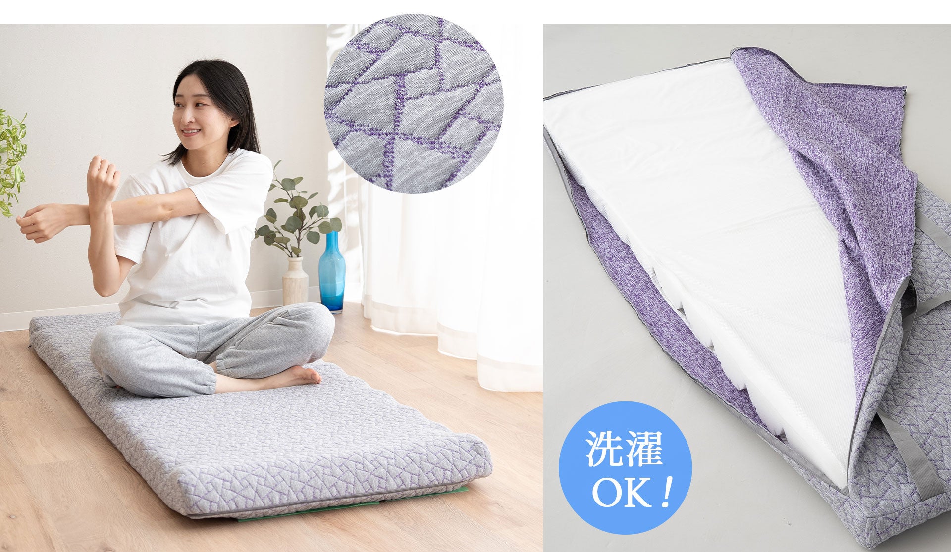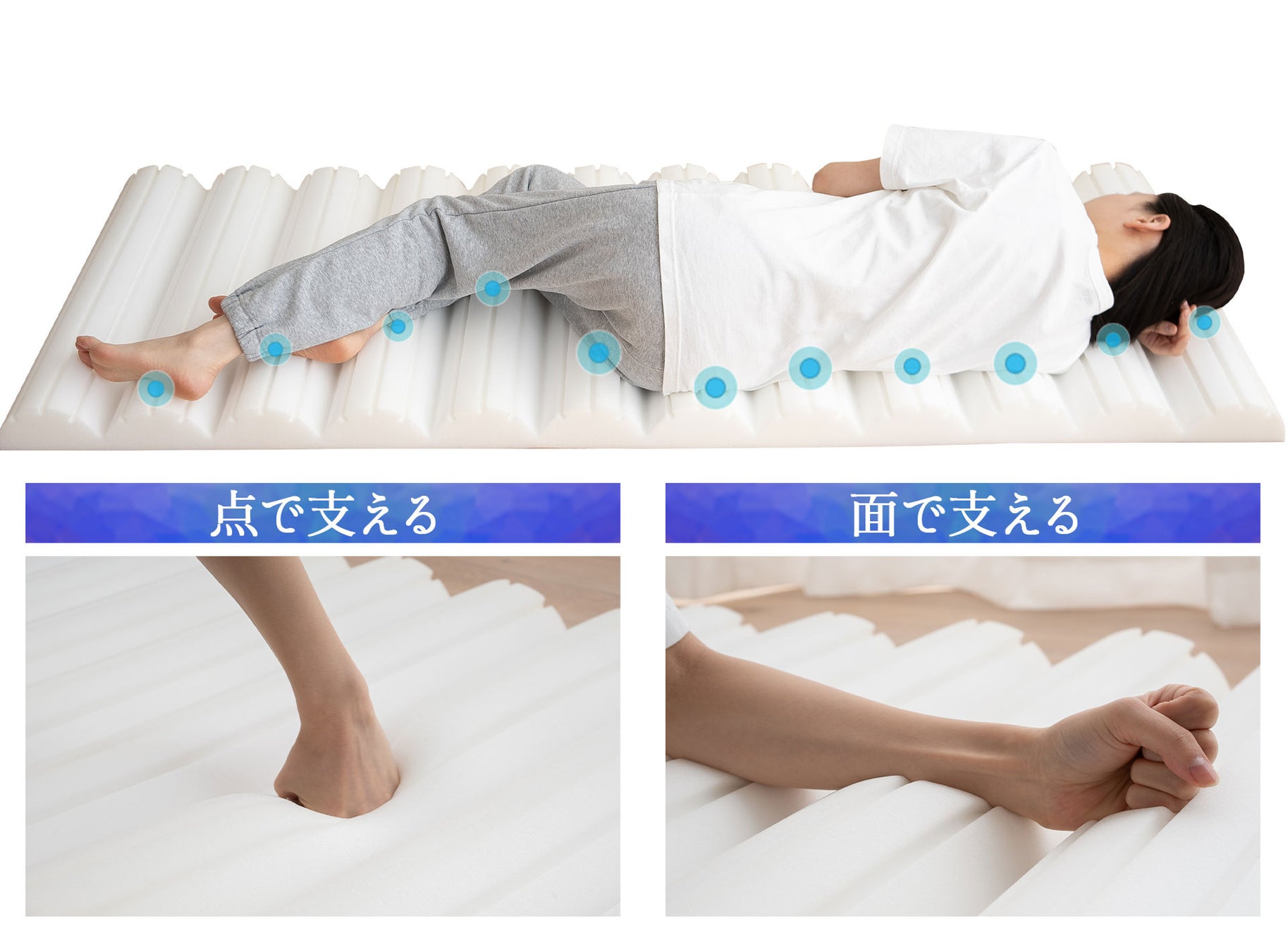 また、ウレタン自体も体圧分散性に優れた高反発のものを使用しているため、体圧が集中しやすい背中や腰などの負担も軽減し、寝返りもスムーズにおこなえます。