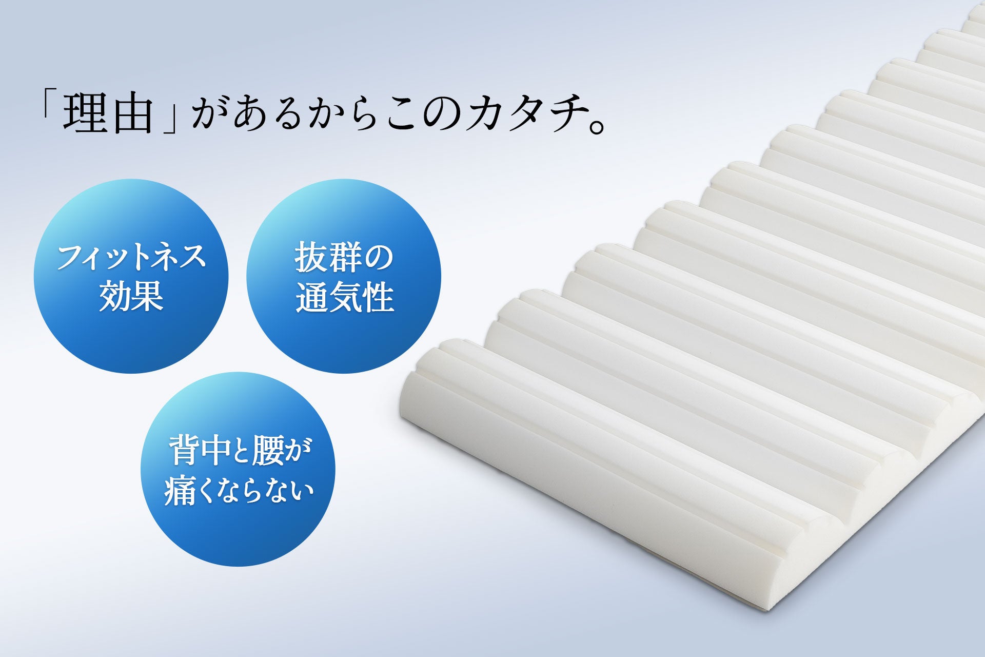 フィットネスロールマットレスは、12本のアーチ型のウレタンを組み合わせた、寝るだけでボディケア※ができるエムール独自形状のマットレスです。
