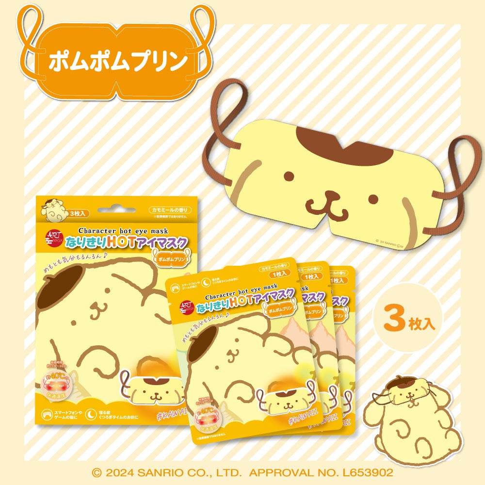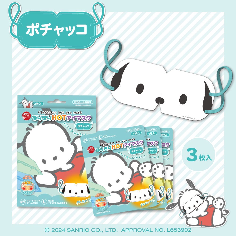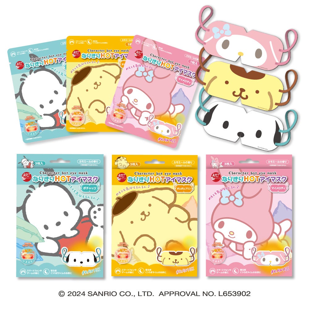 「ポチャッコ」「ポムポムプリン」「マイメロディ」になりきれる「ART MASK(アートマスク)」ブランド初の使い捨て温感マスク。