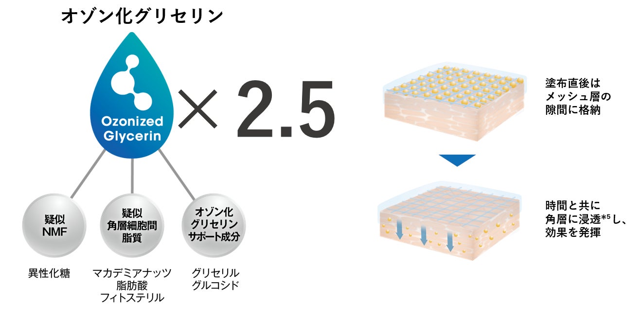 1. 99%水溶性成分で角層をうるおいで満たし、オゾン化グリセリンが角層バリアを整える