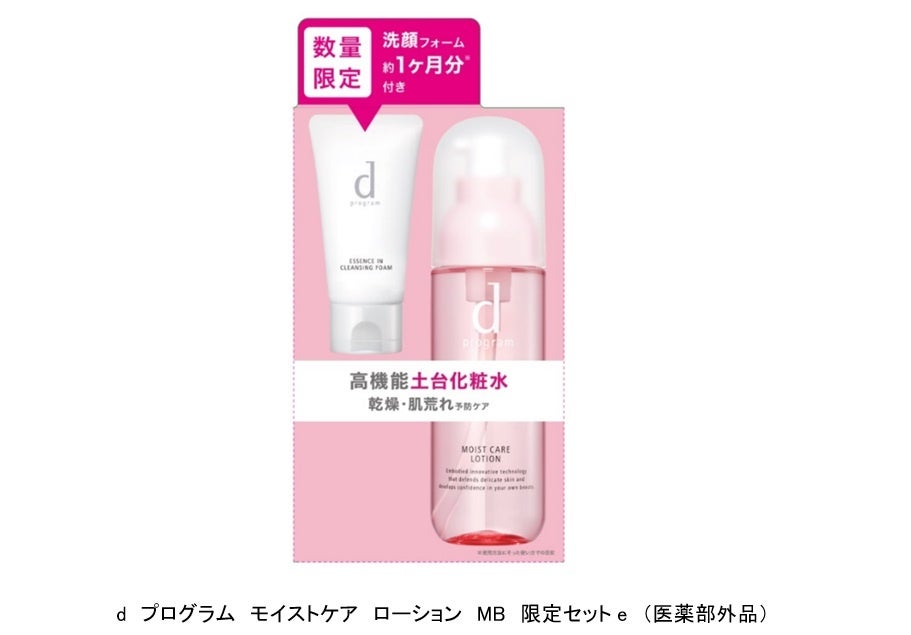 本限定品は、dプログラムの化粧水で最も人気のモイストケア ローション MBの通常サイズに、洗顔料の特製サイズ(約1カ月分※4)が付くセットです。