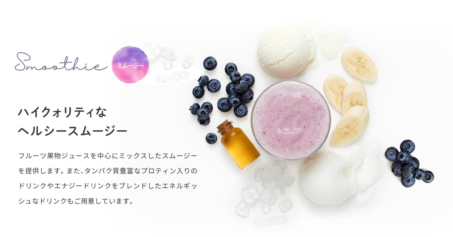 ヘルシースムージーや休日の大人時間にちょっとしたお酒をご用意しウェルビーイングな居心地を提供します。