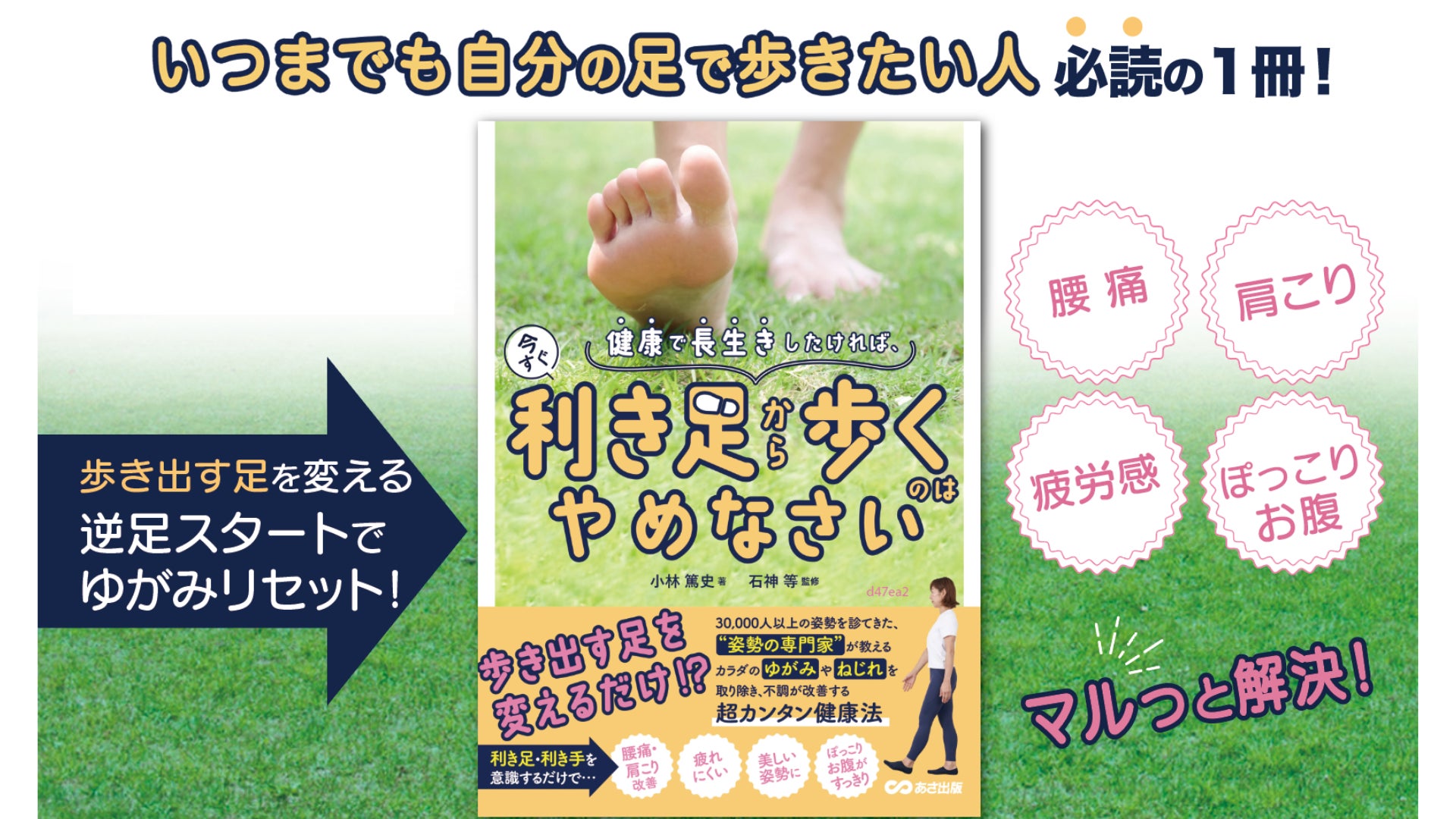 「自分の利き足を知り、歩き出しの1歩を変えるだけ」の超簡単健康法『健康で長生きしたければ、今すぐ利き足から歩くのはやめなさい』(小林篤史著/石神等監修・あさ出版)全国書店・ネット書店で1/7発売