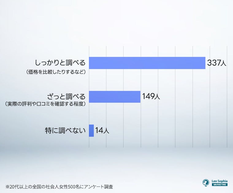 約7割の人が「しっかりと調べる」と回答し、価格や評判を重視する傾向が見られました。この結果は、美容医療に対して慎重な態度を持つ人が多いことを反映しています。特に、高額な施術や新しい技術に対するリスク回避が背景にあると考えられます。