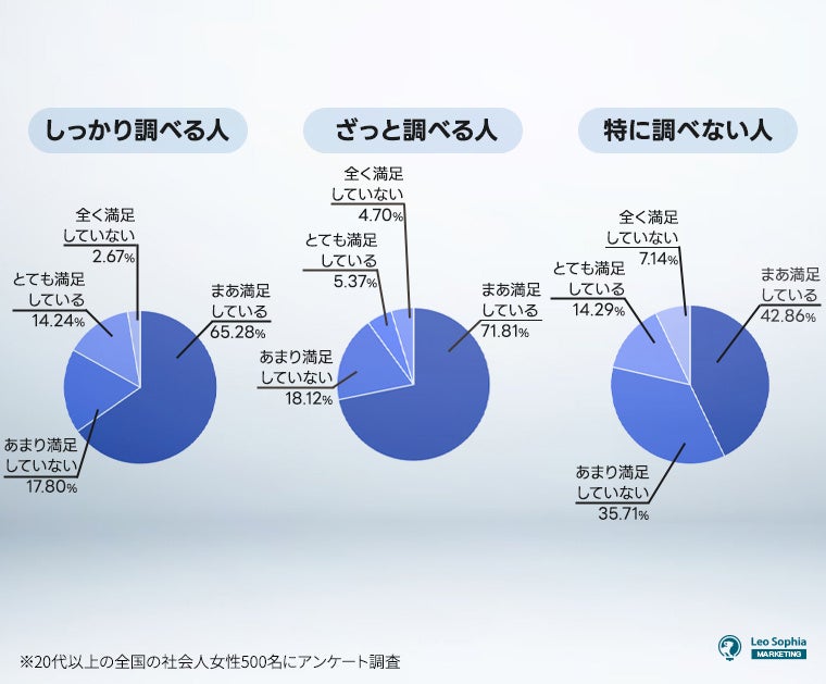 一方で、「特に調べない」と回答した人は「あまり満足していない」と回答した人が多い傾向にありました。この背景には、選択肢を十分に検討せず、施術内容や価格についての理解が不足していることが考えられます。