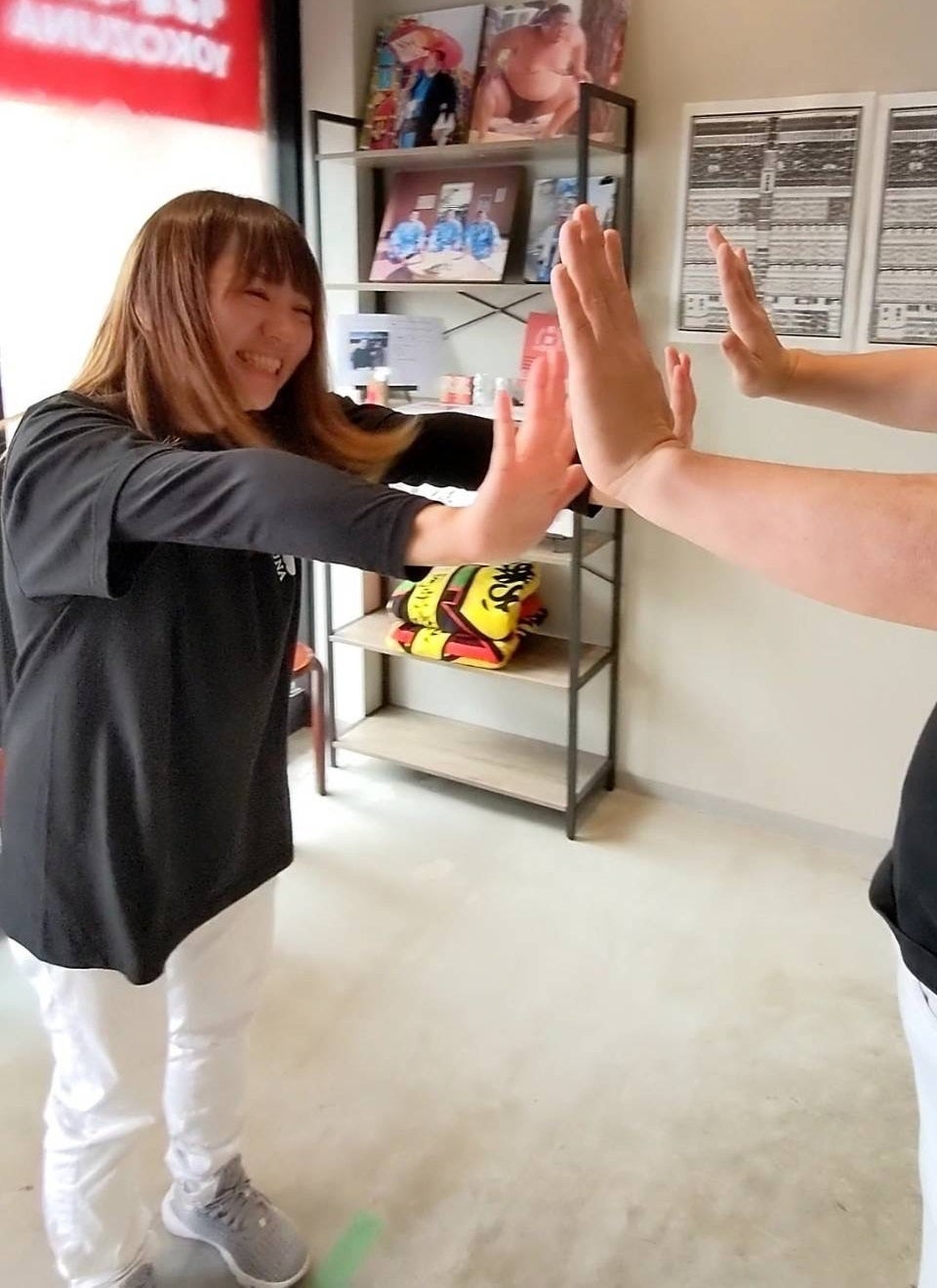 元力士に手押し相撲で挑戦!