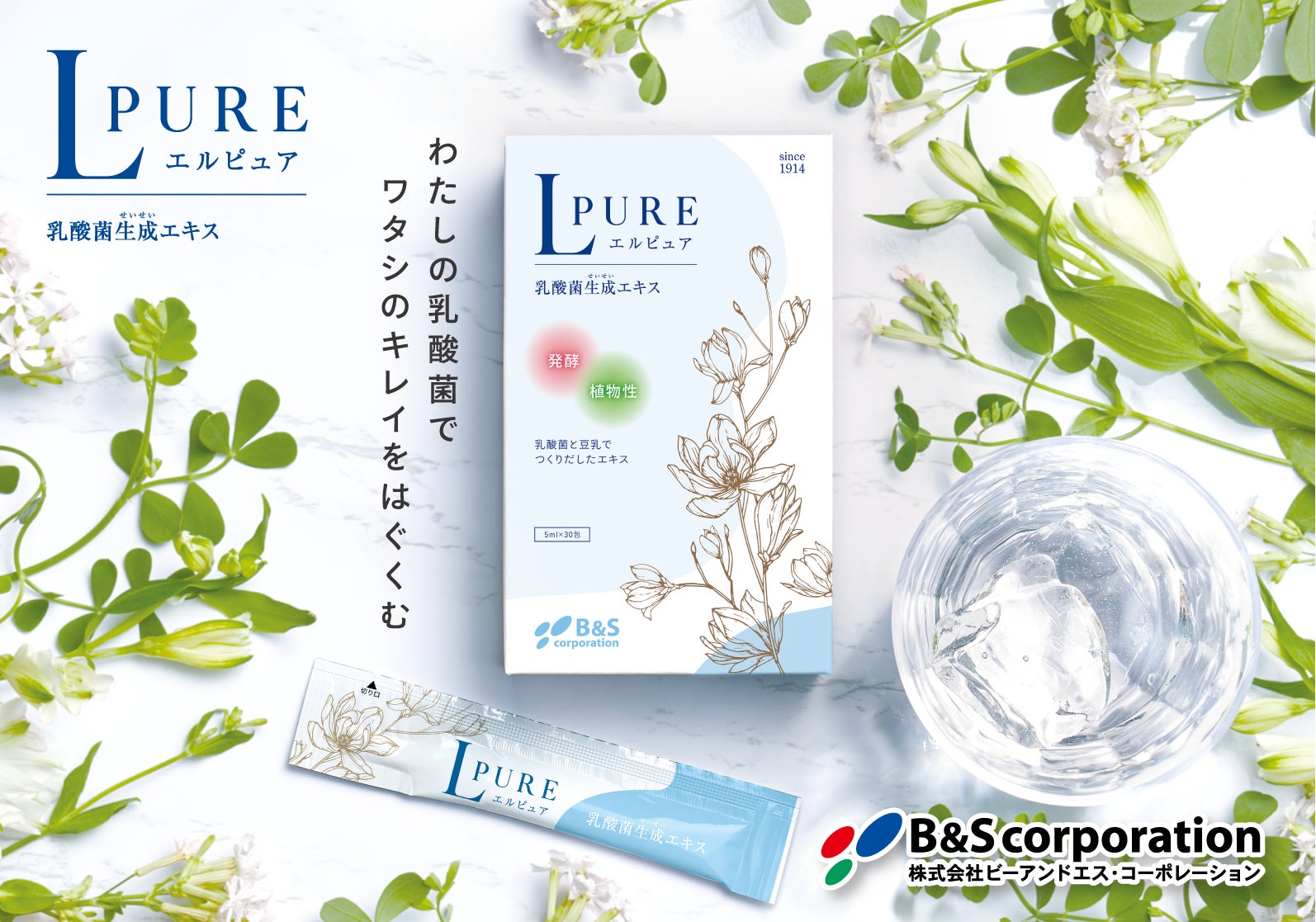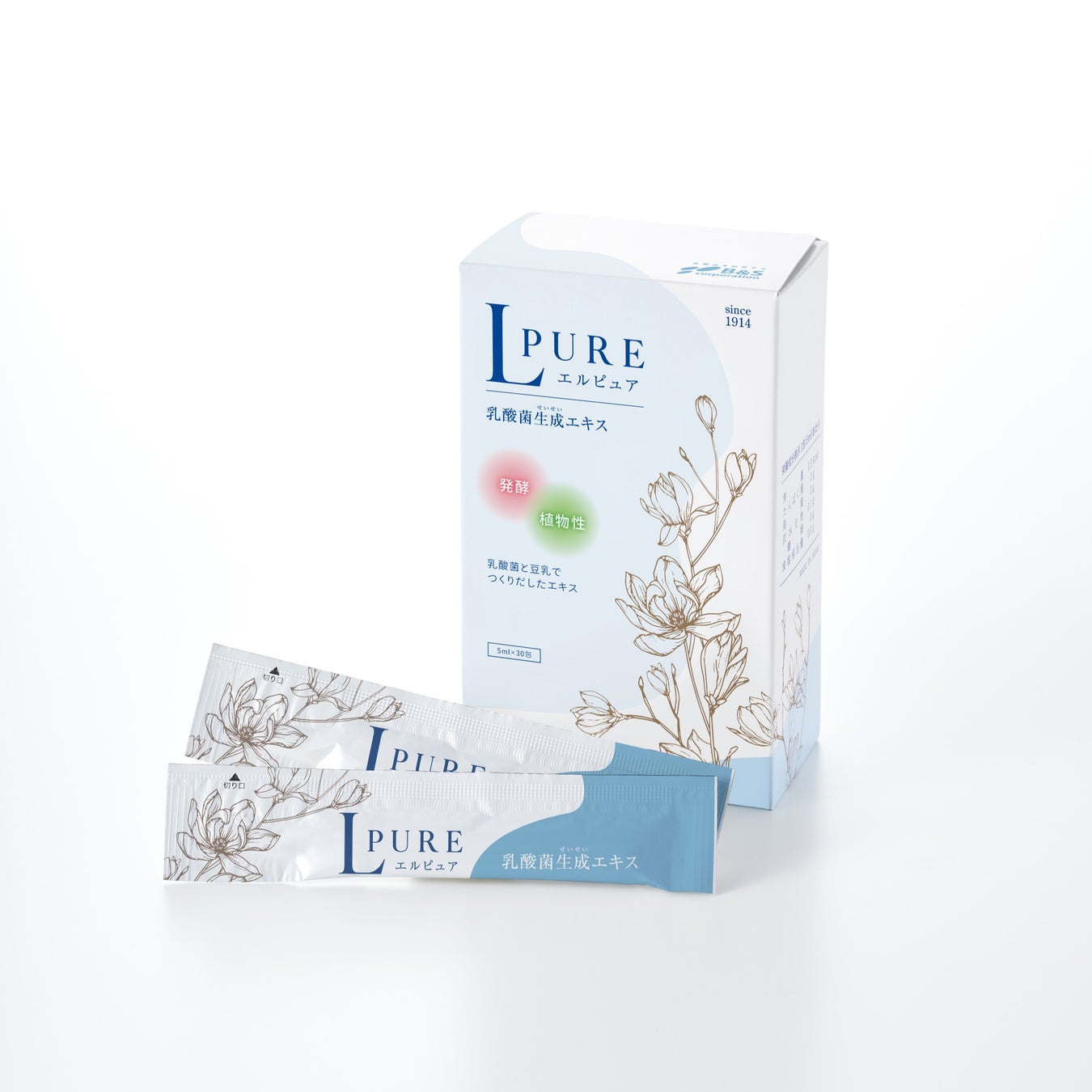 乳酸菌生成エキス「エルピュア」は、独自の16種類の乳酸菌と豆乳による「高密度乳酸菌発酵法」と「特殊抽出法」から得られる乳酸菌の発酵エキスです。生きた乳酸菌ではなく、乳酸菌が発酵中につくりだす成分と乳酸菌の菌体成分のみを抽出。植物性×発酵のチカラがあなたのキレイをはぐくみます。