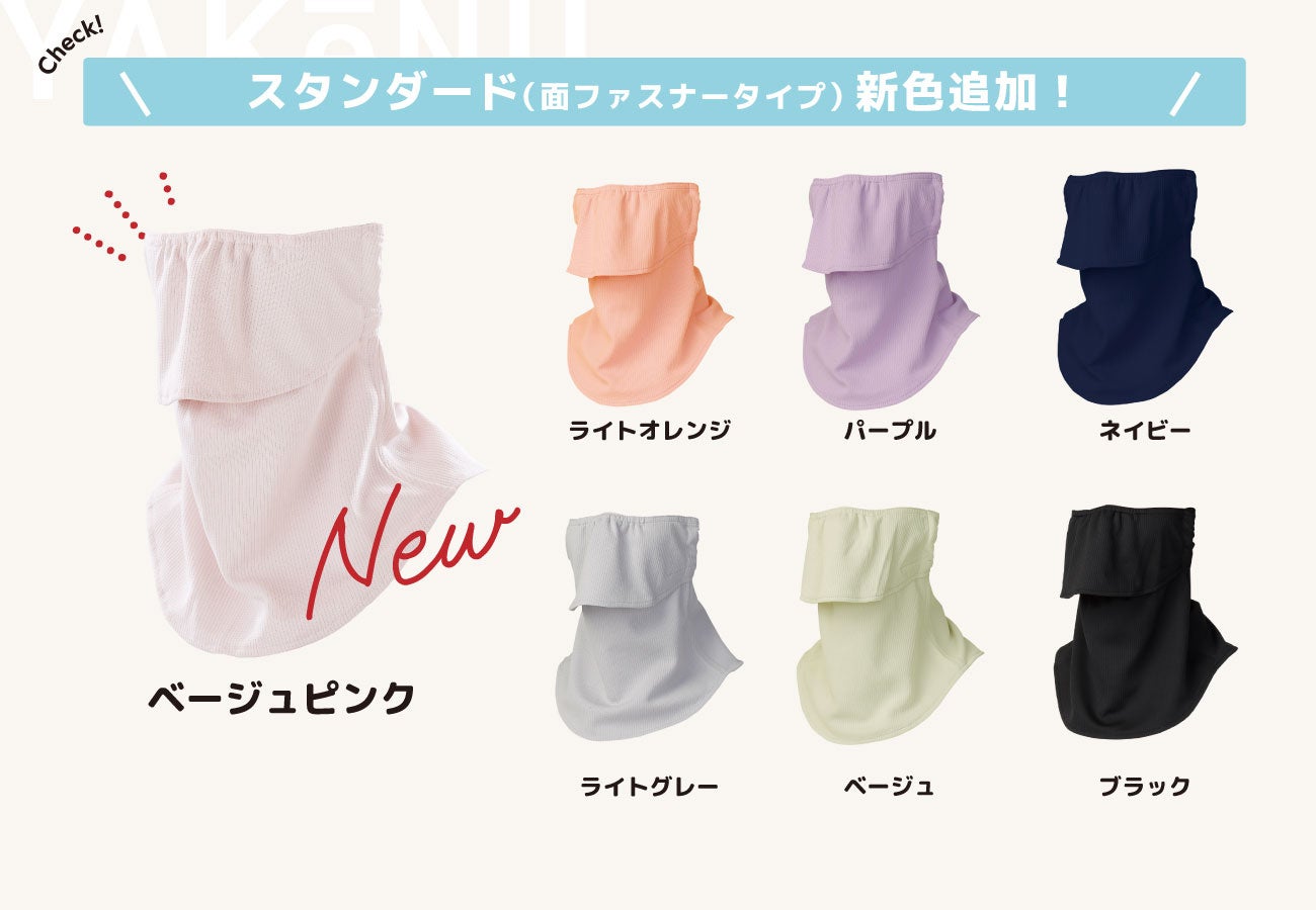紫外線・熱中症対策商品の企画製造を行う株式会社丸福繊維(本社:愛知県西尾市、代表:村瀬 智之)は2025年1月6日(月)より、累計販売数290万点の実績を持つ、日焼け対策専用フェイスカバーシリーズ「ヤケーヌ」の中でも、人気NO.1を誇る「スタンダードシリーズ」それぞれに新色を追加いたしました。