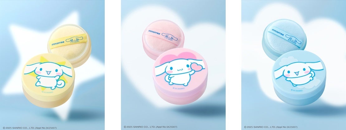 そんな大人気の「シナモロール」とイニスフリーのトップセラーを誇るパウダーアイテムがコラボレーション。『ノーセバム ミネラルパウダー』全3種の「シナモロール」デザインが実現しました。