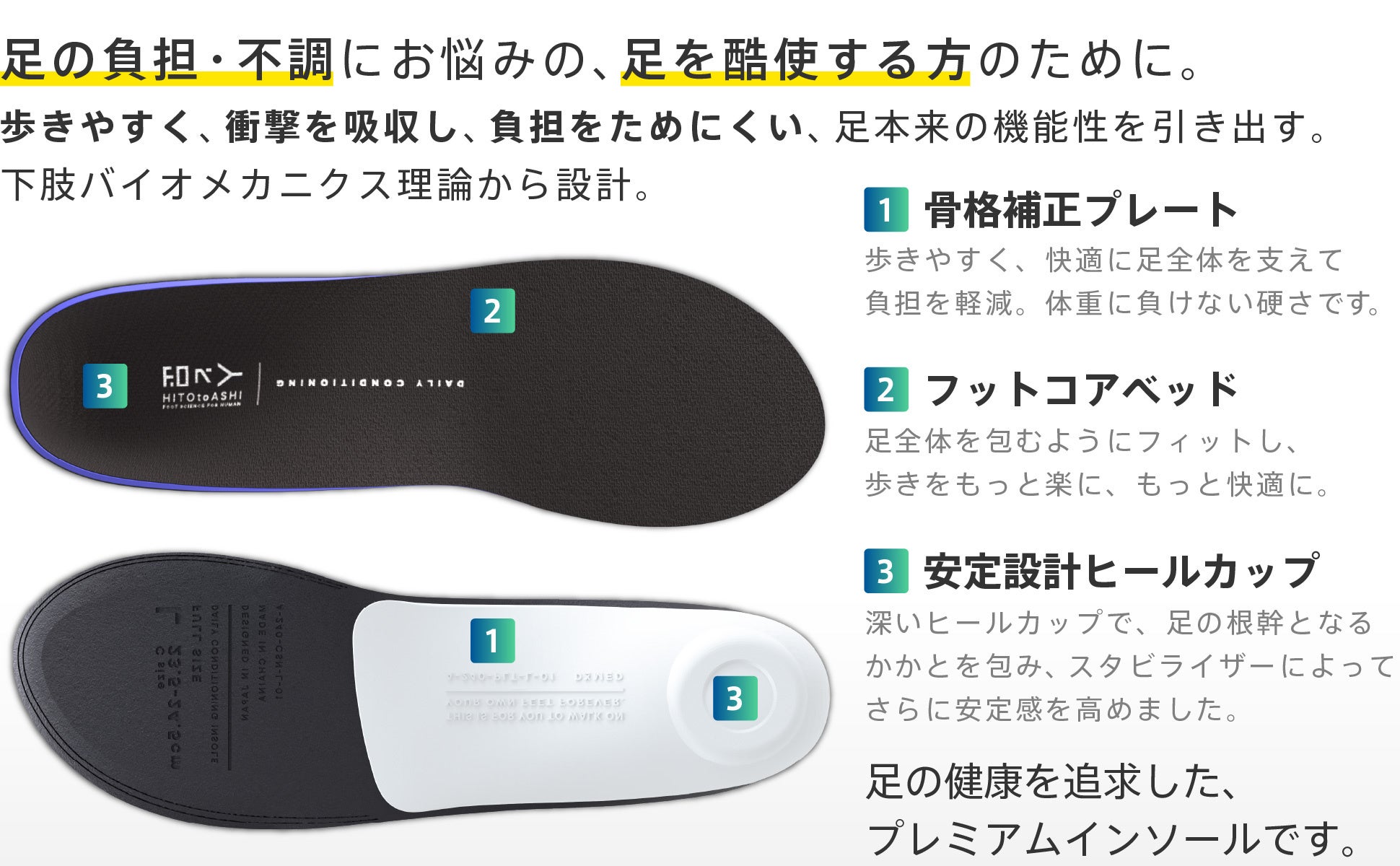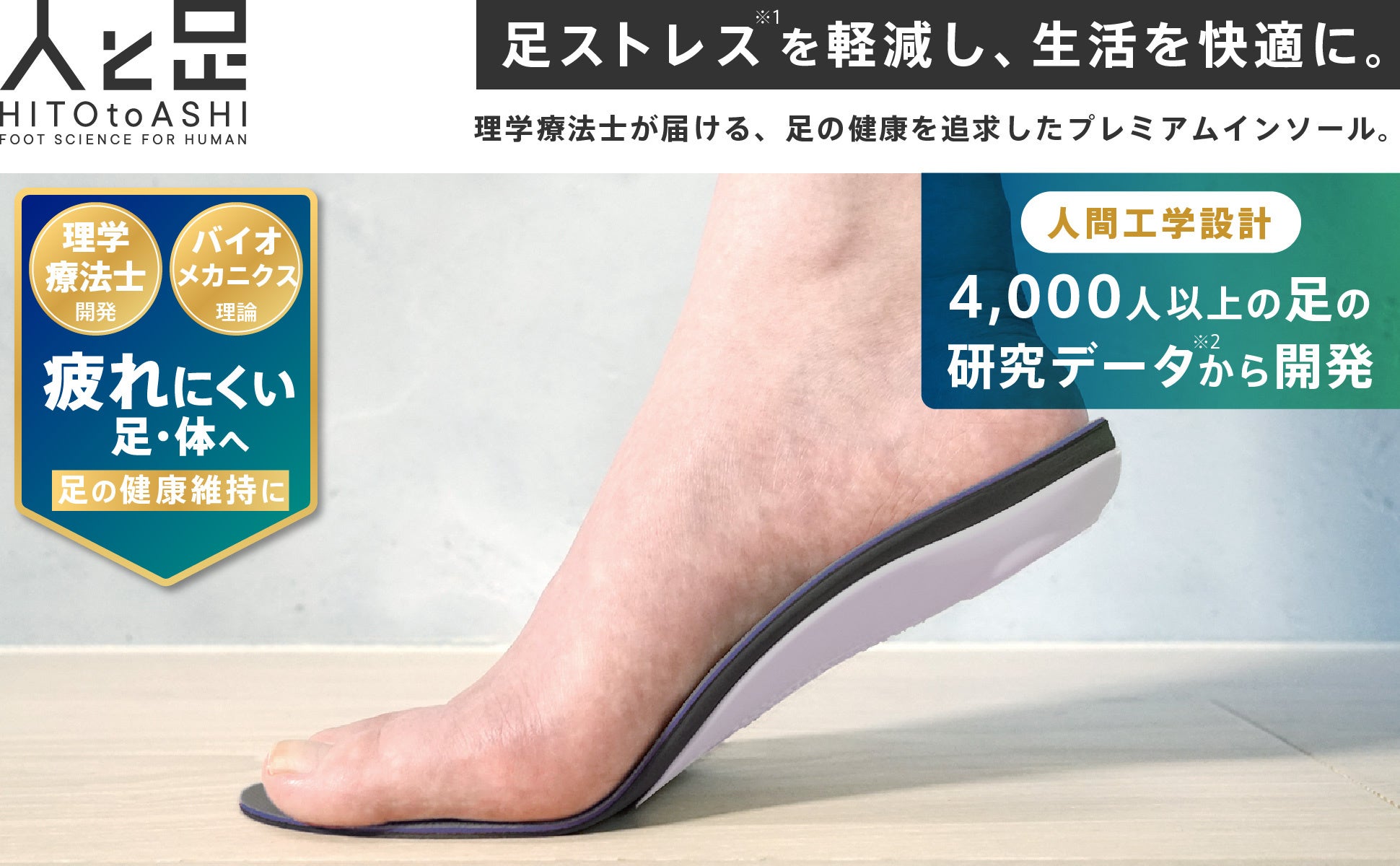 フットウェアブランド「人と足」から、着用時の骨格補正で足ストレスを軽減する新アプローチのインソールが販売開始
