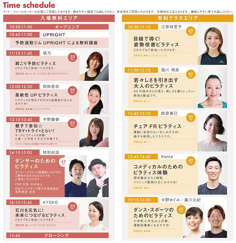 イベントでは、全国のFRPマスタートレーナーやアドバンスインストラクターが登壇し、有料・無料の多彩なクラスを展開。『予防のためのピラティス』をテーマに、ピラティス本来の目的である身体全体の調和とバランスを取り戻し、健康で強く、しなやかな身体作りを目指します。