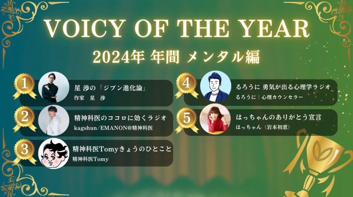 また「2024年年間メンタル編」部門では第5位に、そして「2024年年間プレミアムリスナー数増加」部門でも第13位に輝きました。