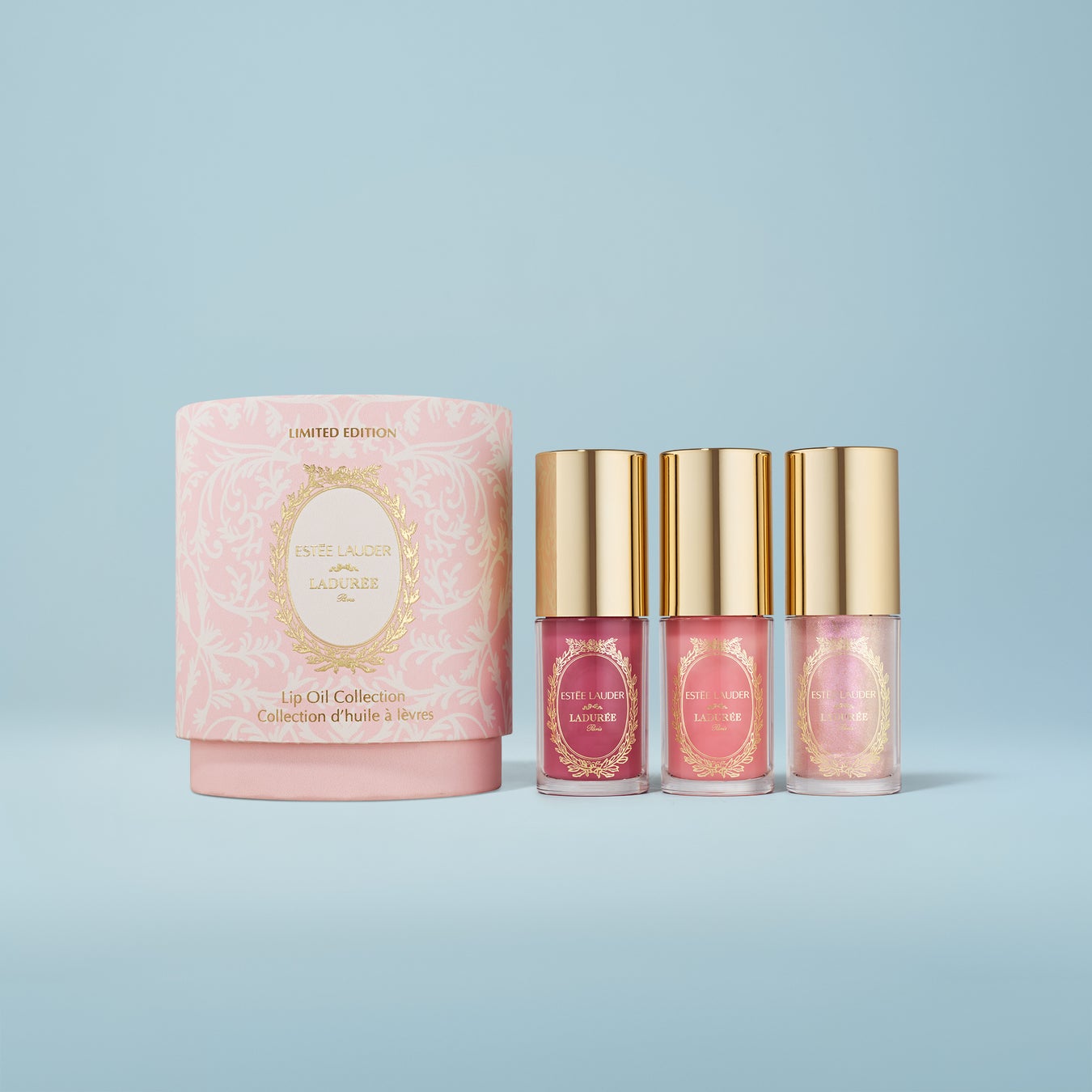 エスティ ローダーとラデュレのコラボレーションにより生まれた、特別なリップ オイルが3本セットされた限定アイテムです。オパールのような繊細な輝きを放つ#グラッセ, ベビー ピンクの#シュクレ, モーヴ ローズの#ロゼの3つのシェードそれぞれが透明感のあるシアーな輝きを唇に与え、最大12時間保湿します。ラデュレを象徴するローズとバニラをイメージした香りです。