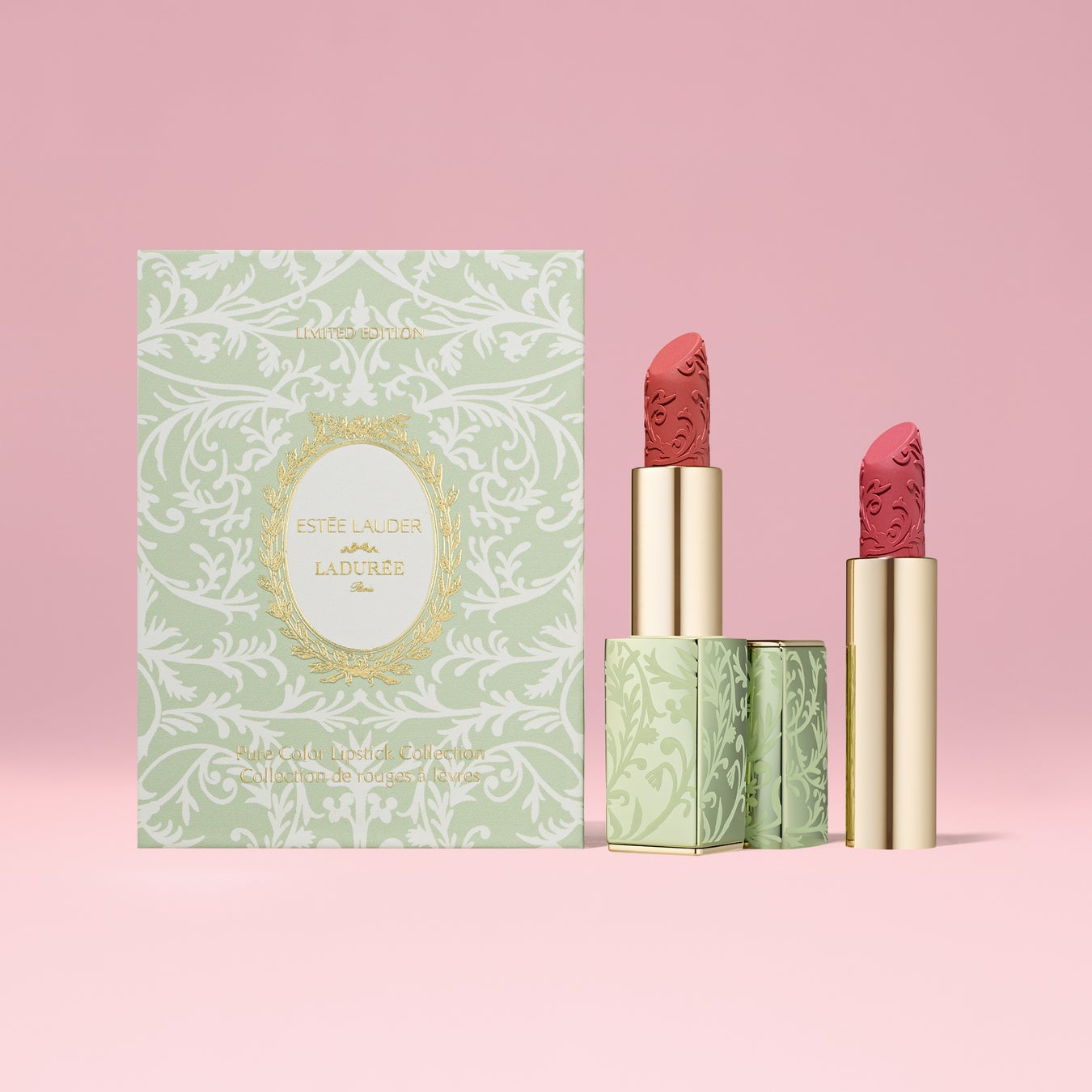 エスティ ローダーを象徴するリップスティック「ピュア カラー」シリーズの世界的ベストセラー シェード#420 リベリアス ローズ(クリーム)と、コラボレーション限定シェード #599 インダルジェント(クリスタル)のリフィルが、ラデュレを象徴するグリーン カラーとエレガントなラデュレ プリントの限定デザインで登場。#420 リベリアス ローズ(クリーム)は、濃密な発色でにじまず、最長10時間鮮やかな発色をキープ。#599 インダルジェント(クリスタル)は高輝度のピグメントと光で包み込み、結晶性ポリマー フォーミュラで、唇の透明感とさらなる輝きを強めます。その日の気分に合わせてシェードを差し替えて持ち歩けます。