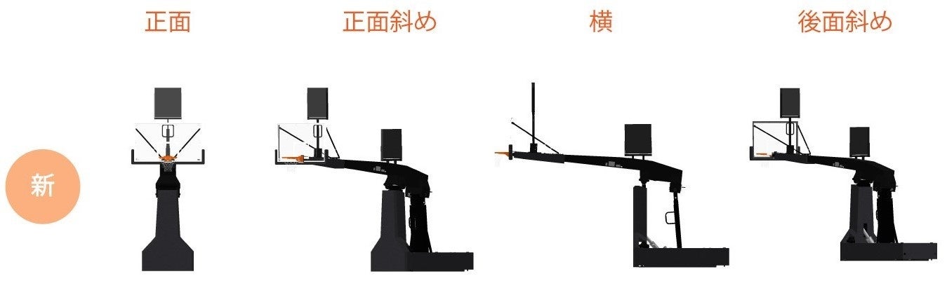 バスケットゴール本体をスリム化し合わせて前面パッドも改良。これまでのゴールに比べて正面からは約27%、フロア席からは約40%、プレーの視認性が向上し、これまで見えにくかったゴール下でのプレーがより見やすくなりました。トップレベルの競技大会やプロスポーツの観戦など、スポーツを「観る人」へ配慮した製品へ改良しました。