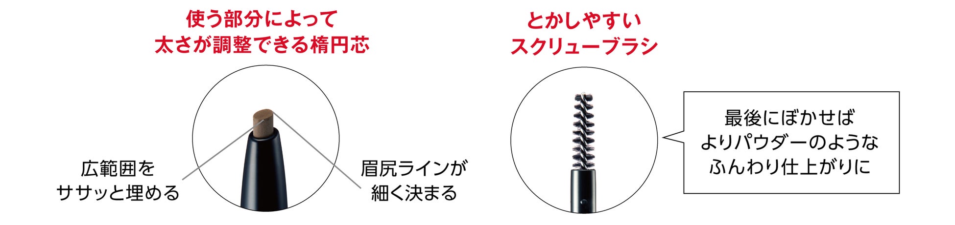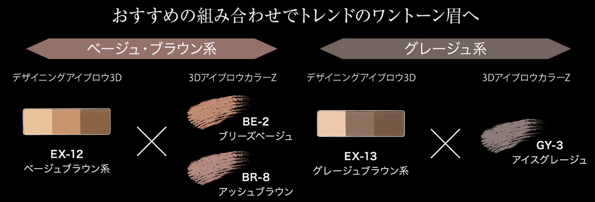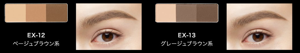 透け発色のブラウンカラーは、目もとを自然に大きく強調!その上から馴染ませクリアパールカラーを重ねれば、くすまずにクリアな立体艶感を演出できます。この他、ブラシでぼかしてパウダリー仕上がりに変化する「アイブロウペンシル(パウダリーフィニッシュ)」や「スーパーシャープライナーEX4.0」の限定色‟新次元なじみブラック“、「スノースキンベース」からはピンクカラーの限定色、そして「3DアイブロウカラーZ」と「デザイニングアイブロウ3D」の限定色‟低彩度グレーニュアンスカラー“も同日発売いたします。