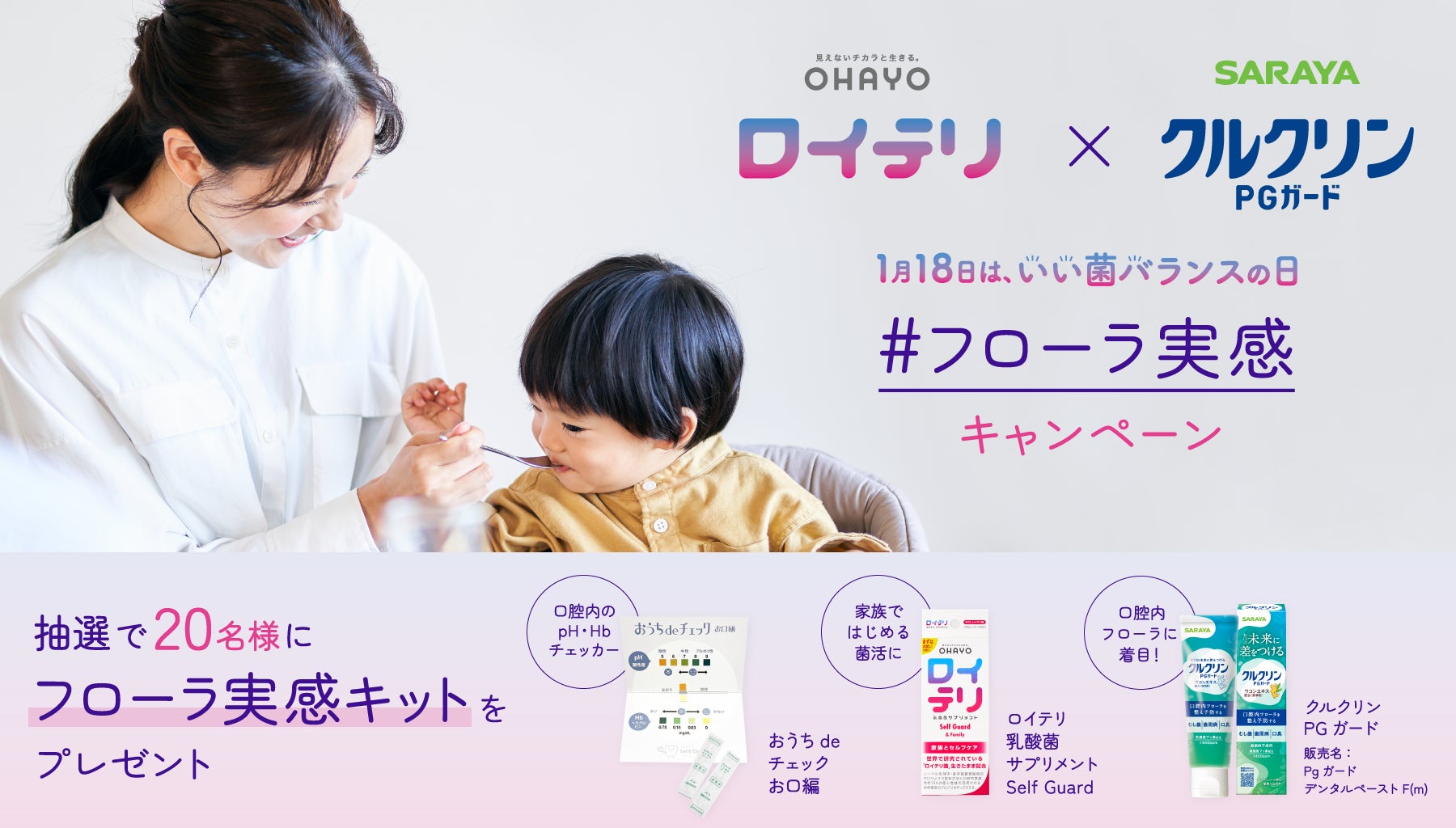 サラヤは1952年の創業当初より、医療施設や食品衛生分野など厳しい衛生管理が求められるプロの現場で感染予防を行って参りました。70年の細菌研究により、腸内・口腔内フローラが健康に及ぼす影響に着目し、2024年には腸内フローラをととのえる腸活シロップ「ラカント フローラビオ」や口腔内フローラに着目した薬用ハミガキ「クルクリン」をリニューアル発売いたしました。同年、乳酸菌サプリ・ヨーグルト「ロイテリ」を販売するオハヨー乳業は「いい菌バランスの日」を制定。サラヤは全身のフローラを整える健康習慣の定着を目指す取り組みとして、同じく製品を通じて体内フローラの重要性を啓発する活動を行うオハヨー乳業の「ロイテリ 乳酸菌サプリメント」などのプレゼントがセットで20名様に当たるSNSキャンペーンを実施いたします。