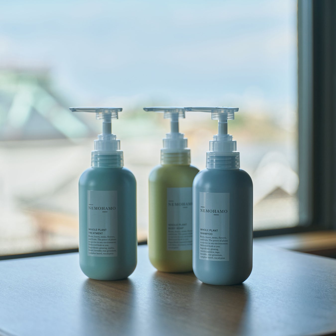 シャンプーとトリートメントはキー成分となる対馬産のオタネニンジンまるごとのエキスや和ハーブエキスを配合しており、ノンシリコンなのにきしまず、地肌からケアできるNEMOHAMOの人気商品。ボディソープは石鹸をベースに、植物由来の保湿成分をたっぷり配合した、つっぱらないやさしい洗い心地です。福岡県の契約農家で大切に育てられた整肌力の高いアカシソを配合し、生き生きとした肌へ導きます。