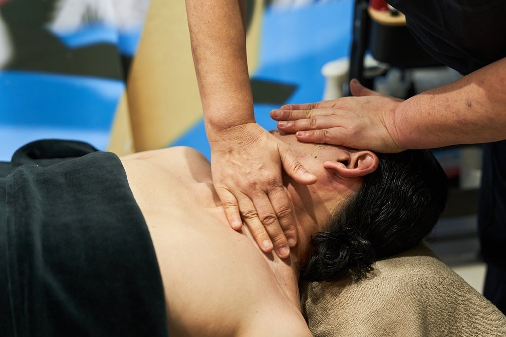 顔、肩、背中、デコルテを整える特別ケア。肩こりやむくみを軽減し、姿勢改善や美しいボディラインをサポート。経絡ケアと腸揉みで内側から健康と美を引き出し、深い癒しの時間を提供します。