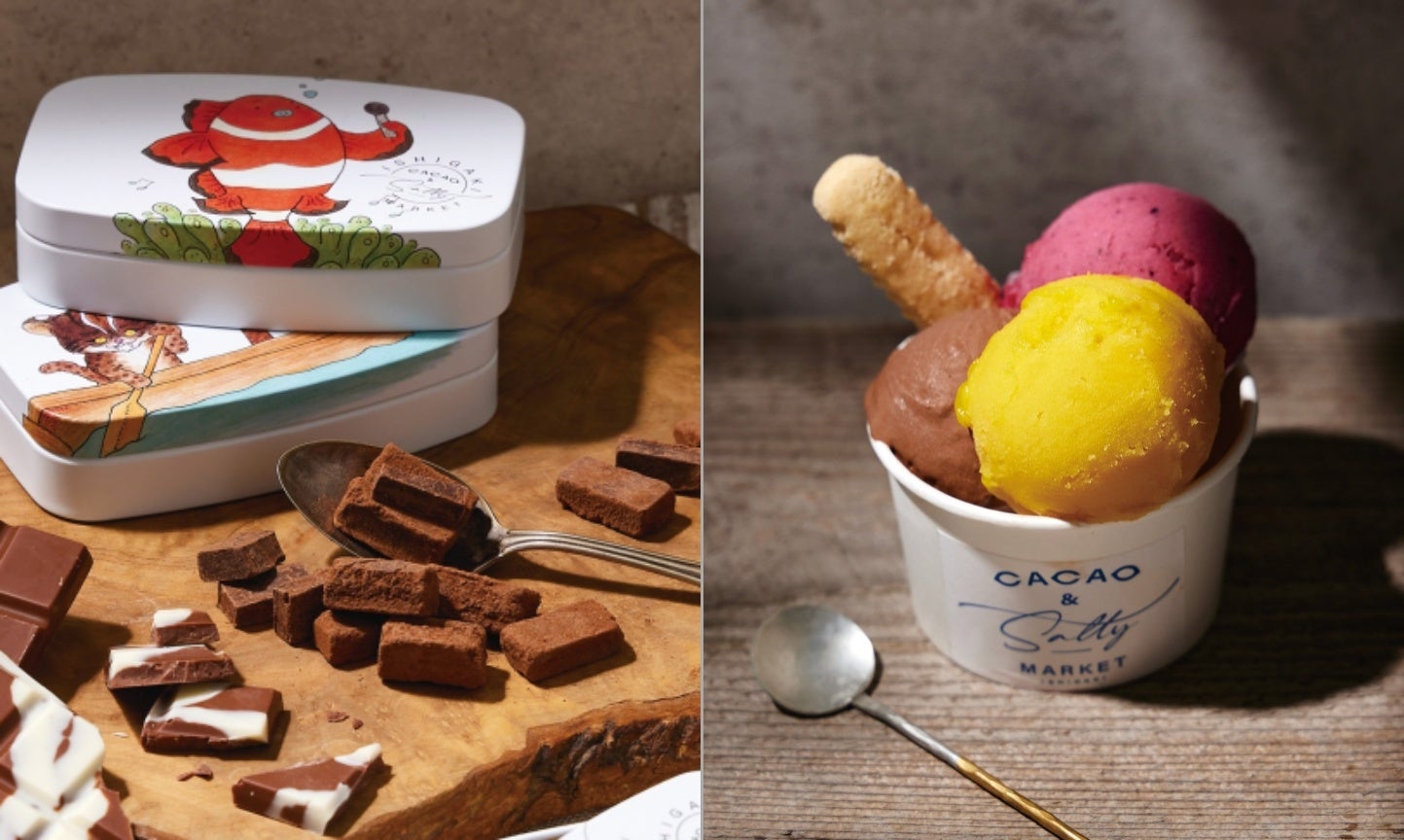 厳選したフェアトレード認証の「カカオ」を使用した香り高いチョコレートや八重山諸島の「塩」を合わせた商品が登場。