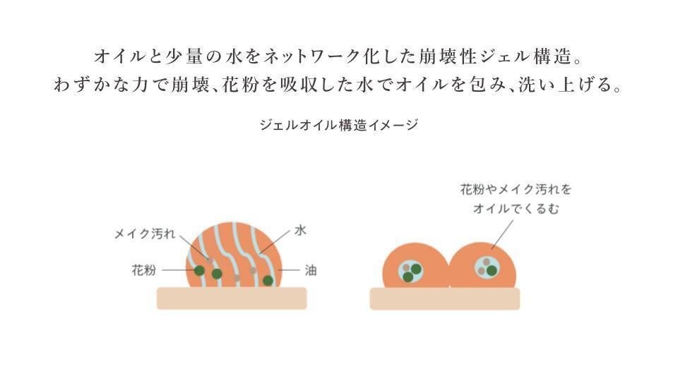 1.花粉をジェルオイルでくるみ”花粉爆発”を防いですすぎ落とす