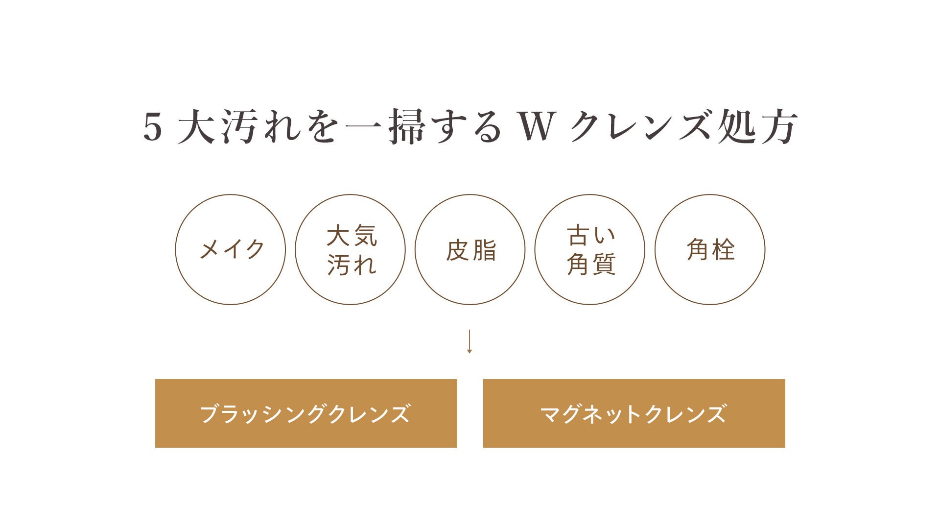 メイクはもちろん、花粉やホコリ・黄砂などの大気汚れ、皮脂、古い角質、角栓といった5大汚れを一掃すべく、ふたつのクレンズ機能を採用しました。