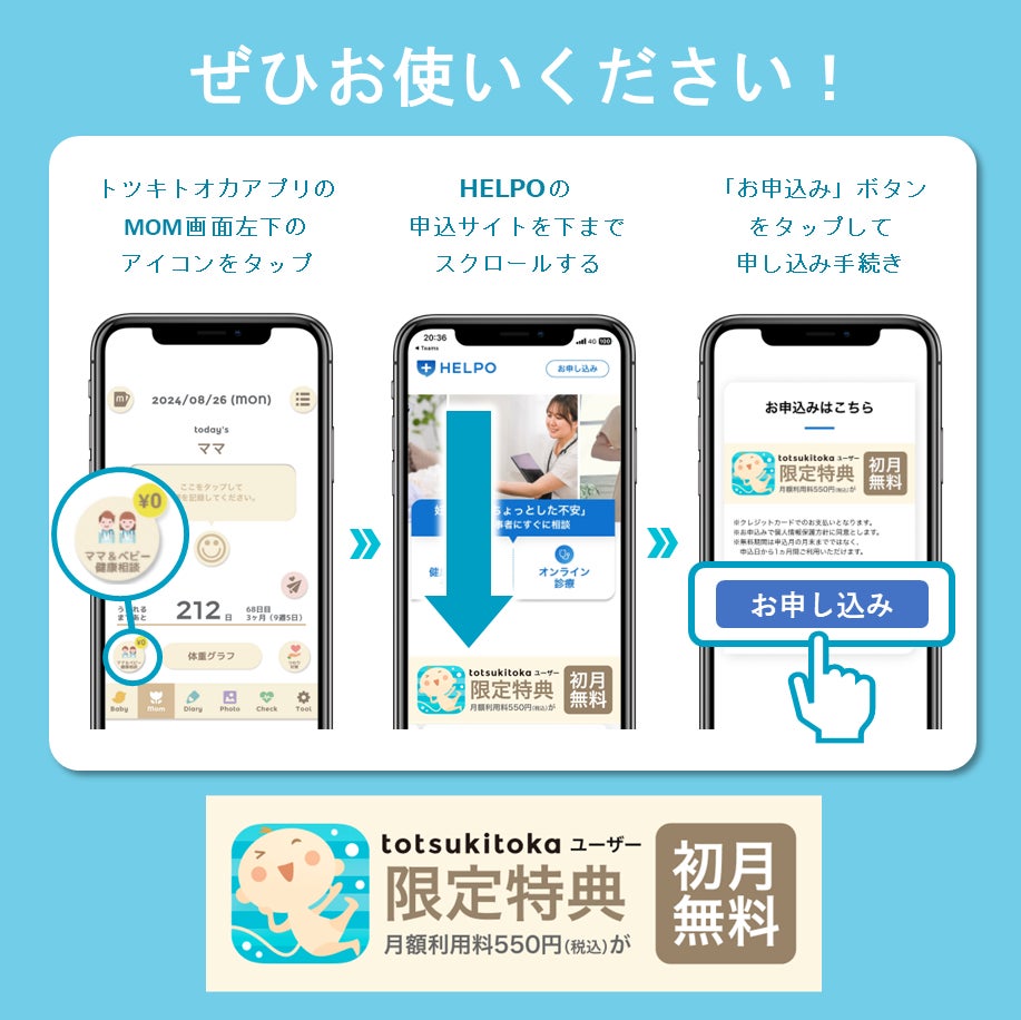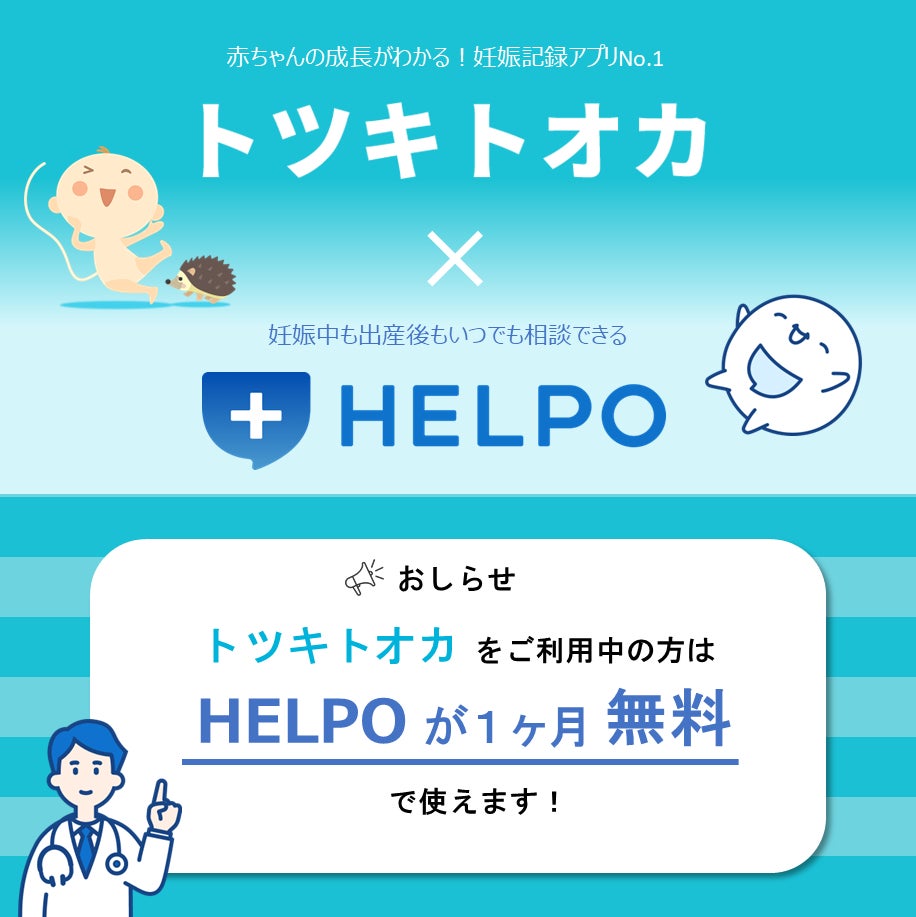 ◆トツキトオカアプリユーザーであれば、HELPOの1か月利用料(月額利用料税込550円)が無料!