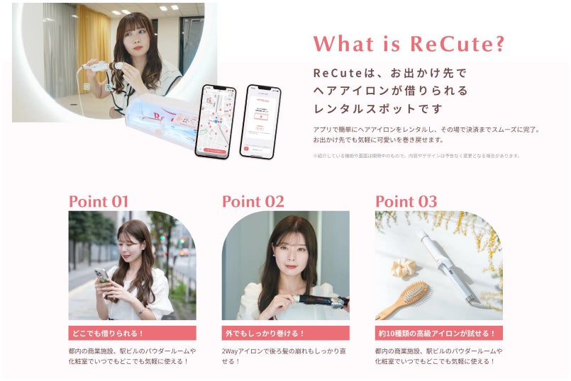 ヘアアイロンのレンタルスポット「ReCute」を展開。エリア展開は都内から進め、最終的に