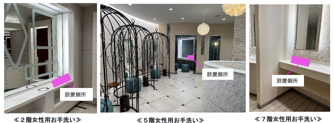 キラリナ京王吉祥寺2階、5階、7階 各階女性用お手洗い内パウダースペースに各1台