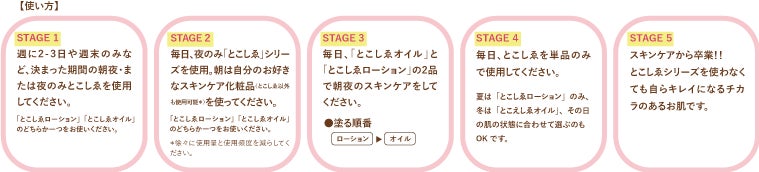 とこしゑシリーズは皮脂の代わりになるもので、外部からの刺激から肌を守り、肌表面の乾燥を防ぐことを目的とした商品です。あえて悩みに対応した美容成分を浸透させず、肌が本来持つバリア機能を残しながら肌断食のような状態にすることで、次第に肌細胞が自ら潤う力を目覚めさせていきます。やがて、化粧品に頼らなくても、自ら潤う力のある肌を手に入れることを目的としたのが「とこしゑ」シリーズです。