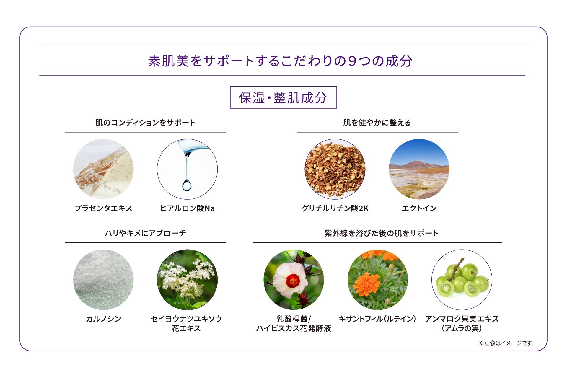 日中の乾燥や紫外線による悪影響から肌を守る美容成分を厳選。