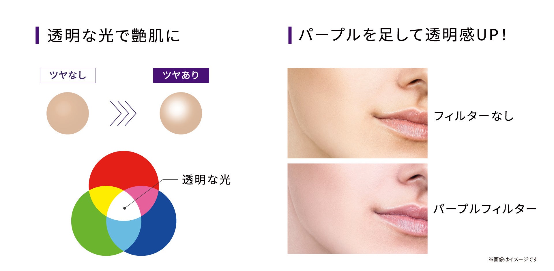 光を利用してくすみを飛ばし、ツヤと透明感が持続する処方を採用。