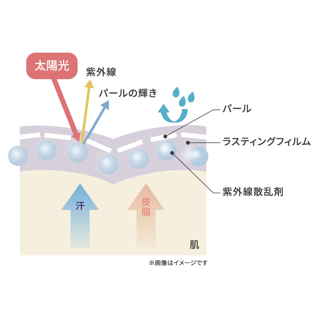 紫外線から肌を守る紫外線散乱剤や、肌を美しく見せるパール剤を密着させます。