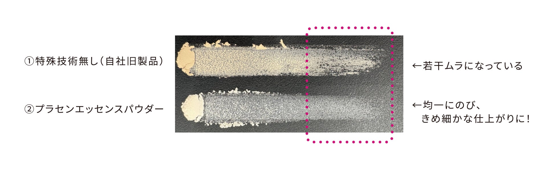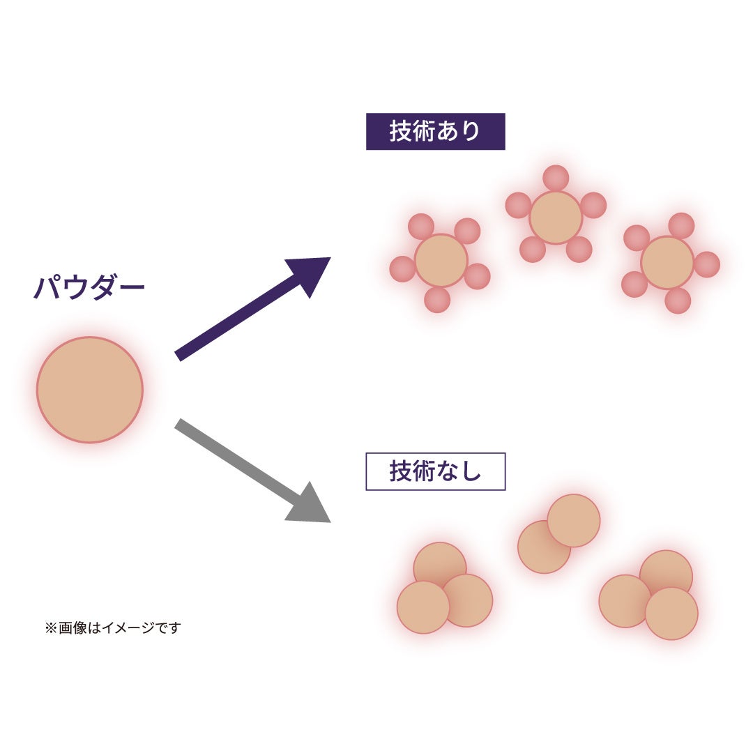 パウダーのまわりに小さい球状のパウダーをまとわせる特殊技術で、パウダー同士の付着を防ぐことに成功!するすると軽やかに肌に広がり、ムラのない滑らかな仕上がりに。