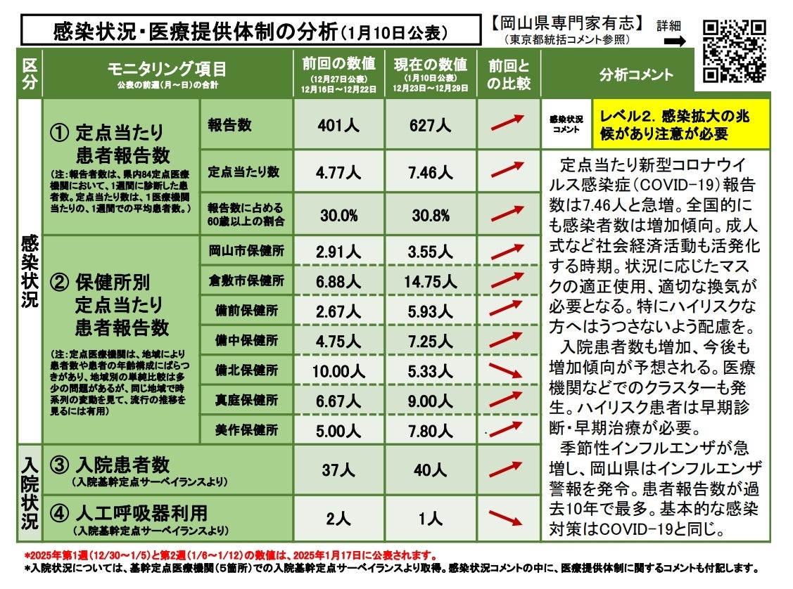 ◆感染状況・医療提供体制の分析〔2025年 1月 10日(金)現在〕