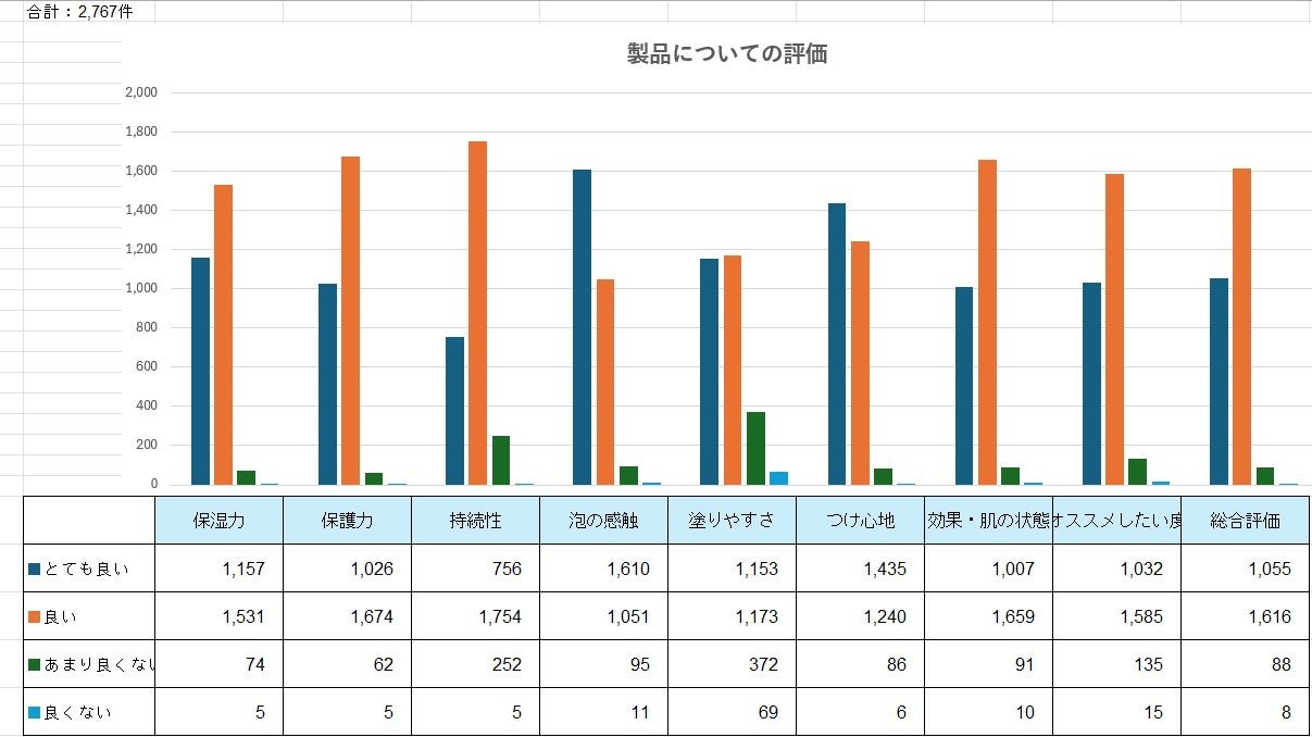 このサラサラな使用感の「軽さ」と「心地よさ」は、2767人のアンケート調査でも多くの支持を集めました。