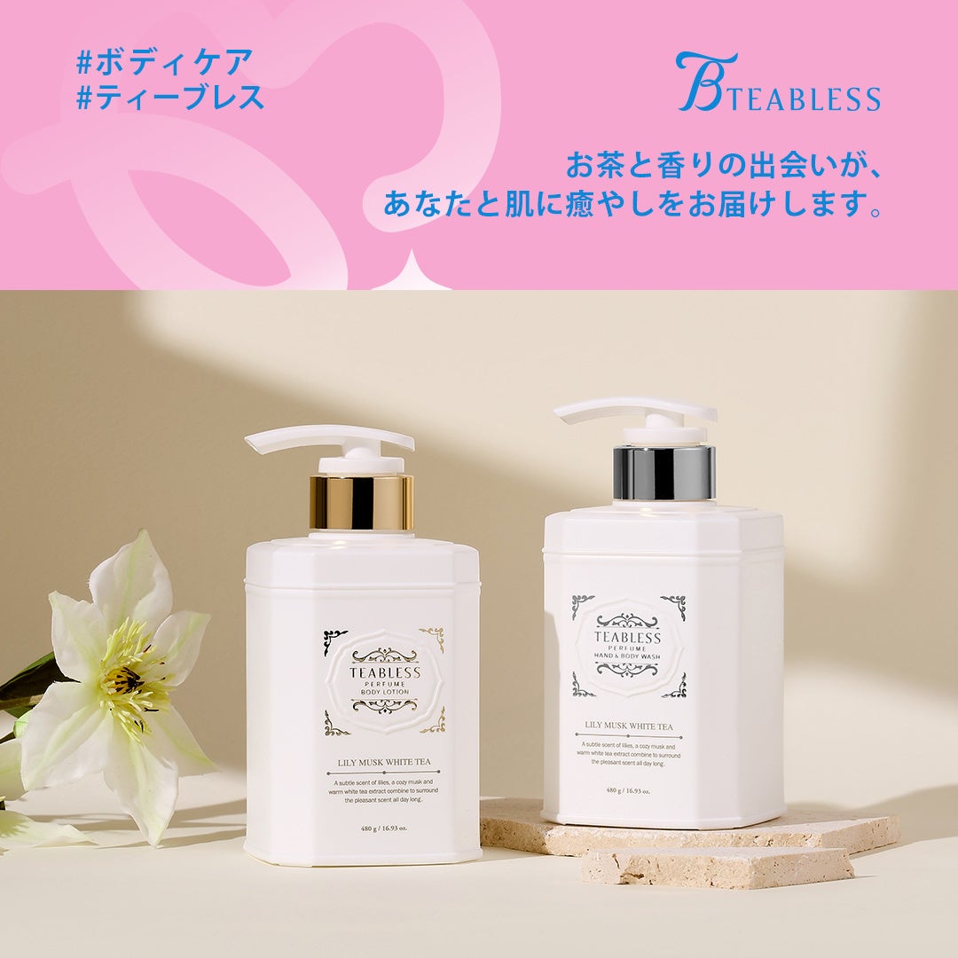お茶からのセラミドでベタつきなく長続きする保湿の「ボディローション」、本物の茶葉入りで角質に優しくアプローチする「ボディソープ」
