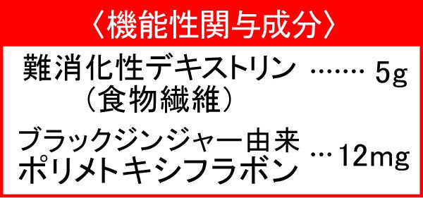 【原材料名】難消化性デキストリン(アメリカ製造)、果糖ぶどう糖液糖、黒大豆、ブラックジンジャー抽出物、コーヒー、麦茶エキス粉末/ゲル化剤(増粘多糖類)、香料、シクロデキストリン、クエン酸、カラメル色素、甘味料(スクラロース)